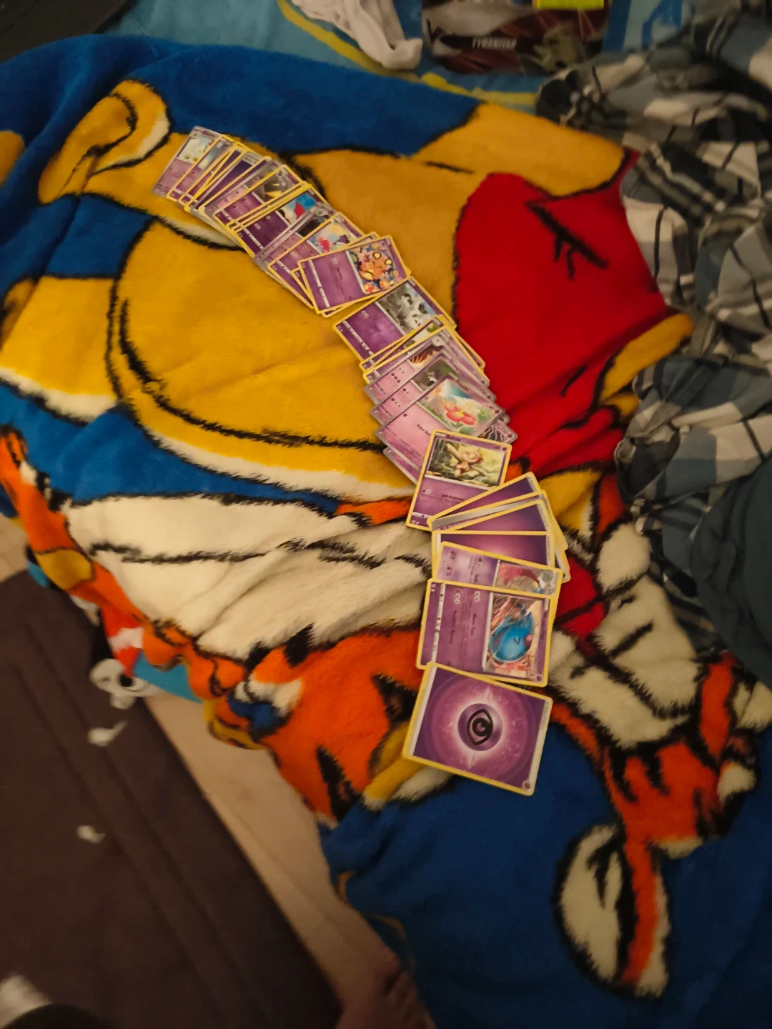Collection of assorted Pokemon trading cards. Includes various Pokemon and energy cards. These cards are great for collectors or players looking to expand their decks.