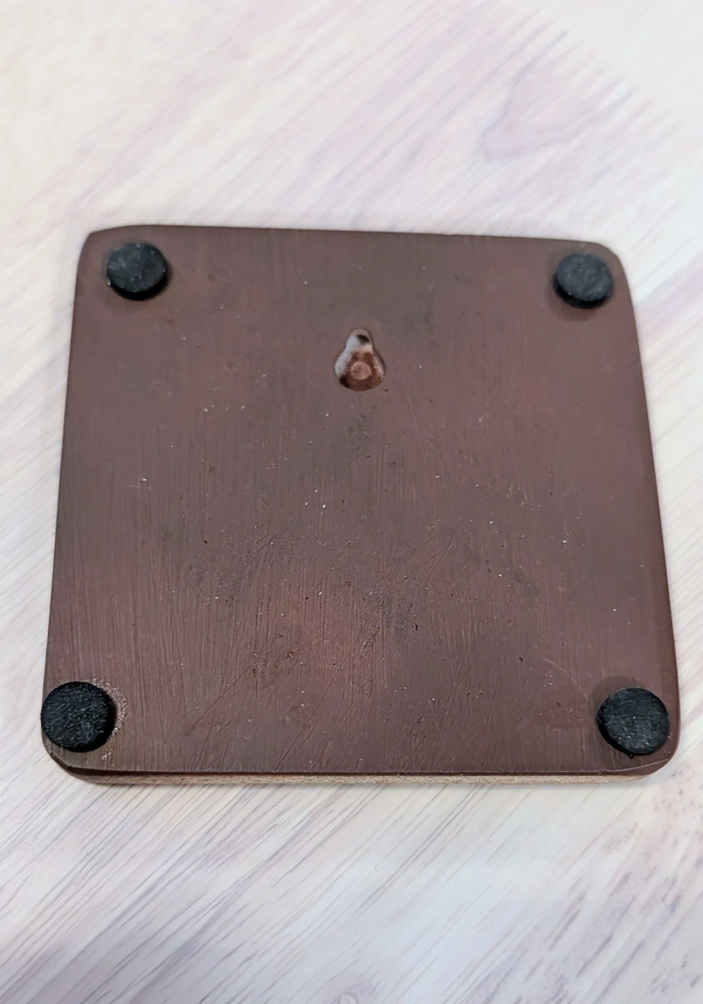 This decorative coaster features the sentiment "ALWAYS A DAUGHTER NOW A FRIEND". It has a brown textured finish with black lettering. The underside has four protective felt pads and a small hanging loop.
