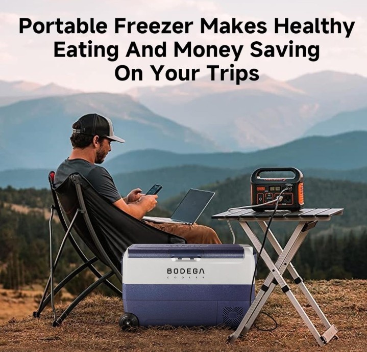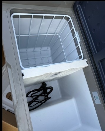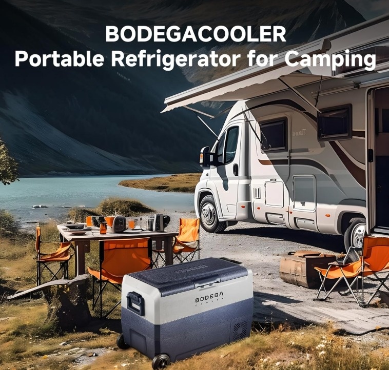 Selling a BODEGA COOLER 12 Volt Portable Refrigerator, 53 Quart (50L) Dual Zone Car Fridge Freezer. Can cool from -4℉ to 68℉. Features APP control for easy temperature setting on iOS and Android, or manual control. The powerful compressor cools the left zone to 32℉ in about 15 minutes. Battery protection system with H/M/L levels. Dual zone independent cooling: Left zone 30 Quart, Right zone 23 Quart. Great for keeping food fresh on RV trips, camping, or in your truck. Includes: portable refrigerator, cigarette lighter connector, wall plug, wall plug adapter, and user manual. Also has wheels, a retractable handle, USB socket, and interior LED light for convenience.