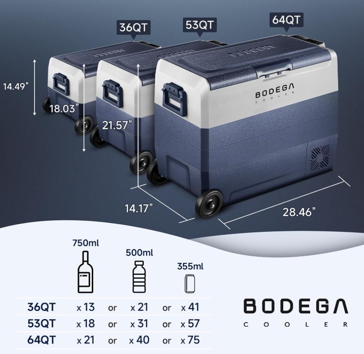 BODEGA COOLER 53 Quart Dual Zone Car Fridge Freezer w/App Contro