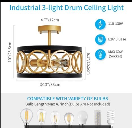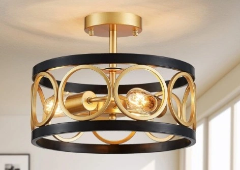 Vintage Black and Gold Drum Chandelier