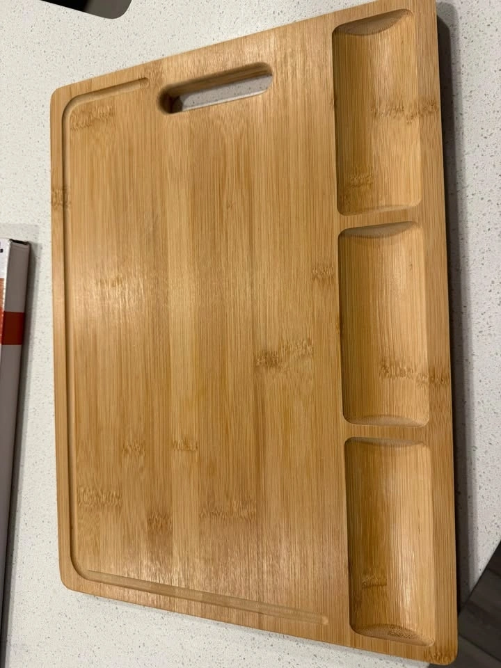 Large Bamboo Cutting Board with 3 Compartments
