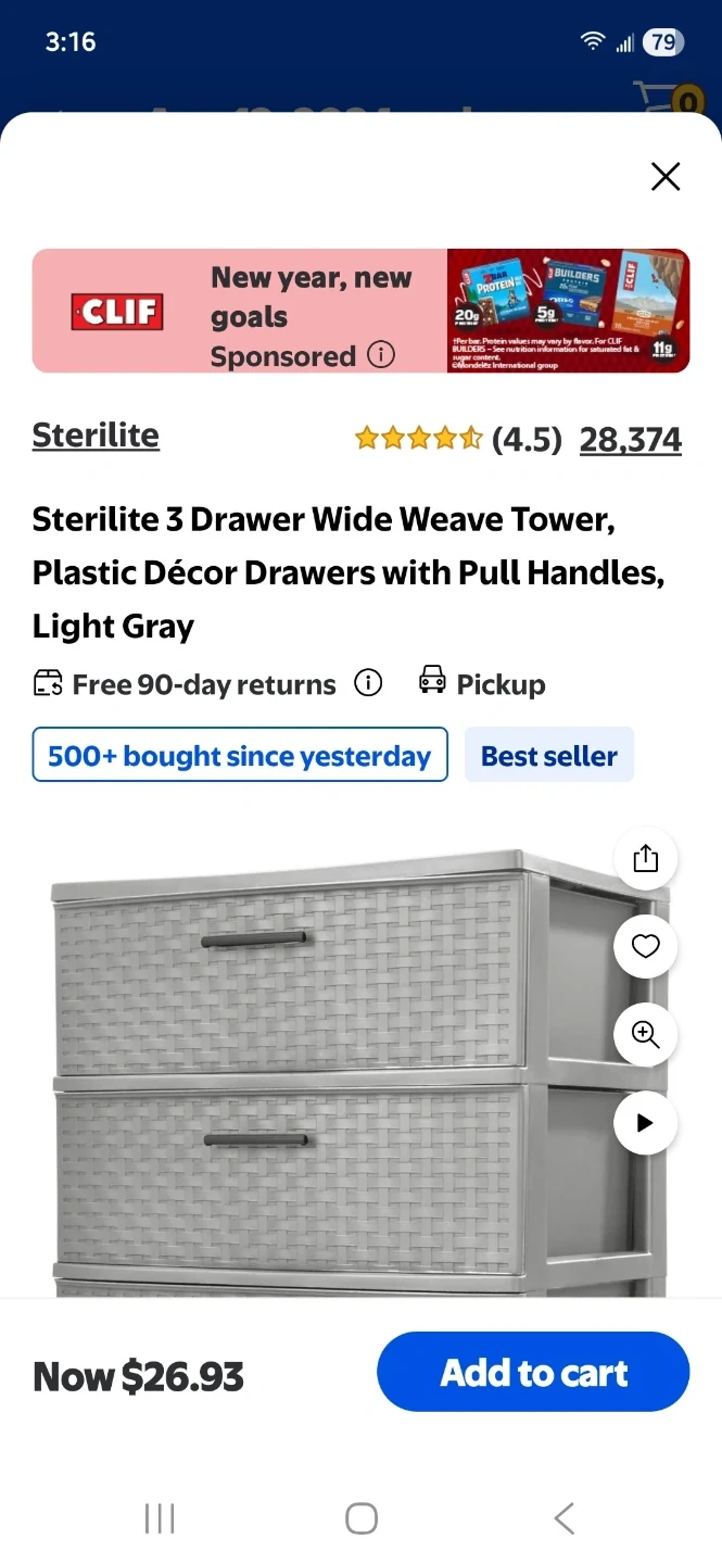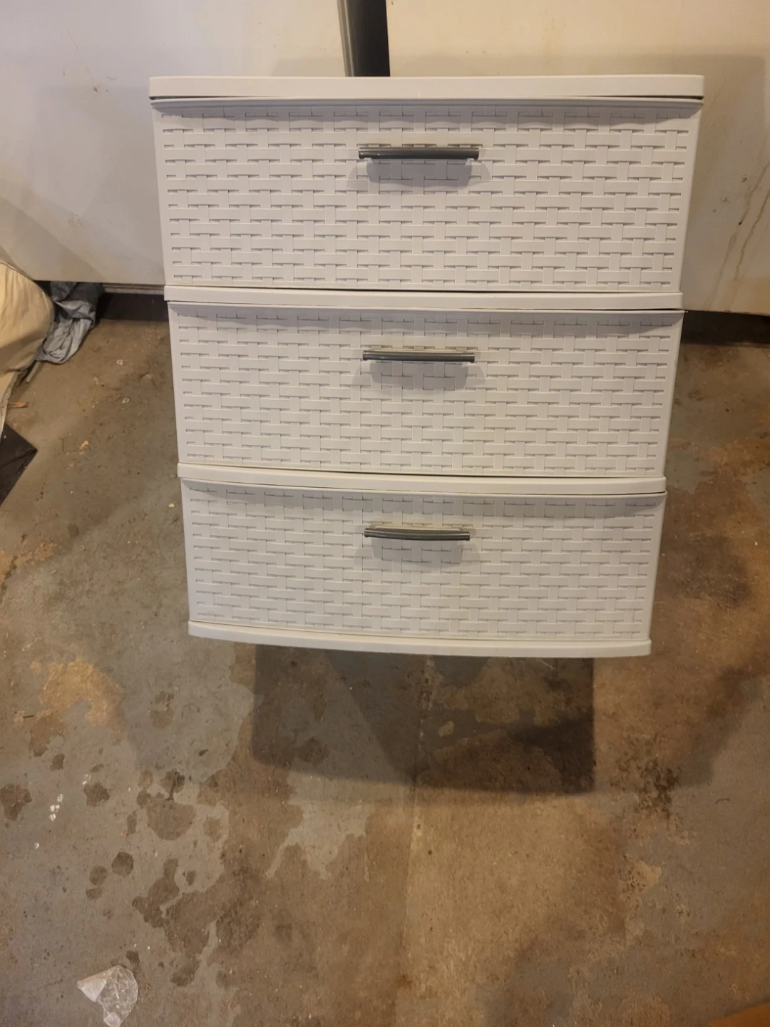 Selling 2 - This Sterilite 3 drawer wide weave tower is a convenient storage solution. It's a light gray color and features pull handles. The woven texture adds a decorative touch.