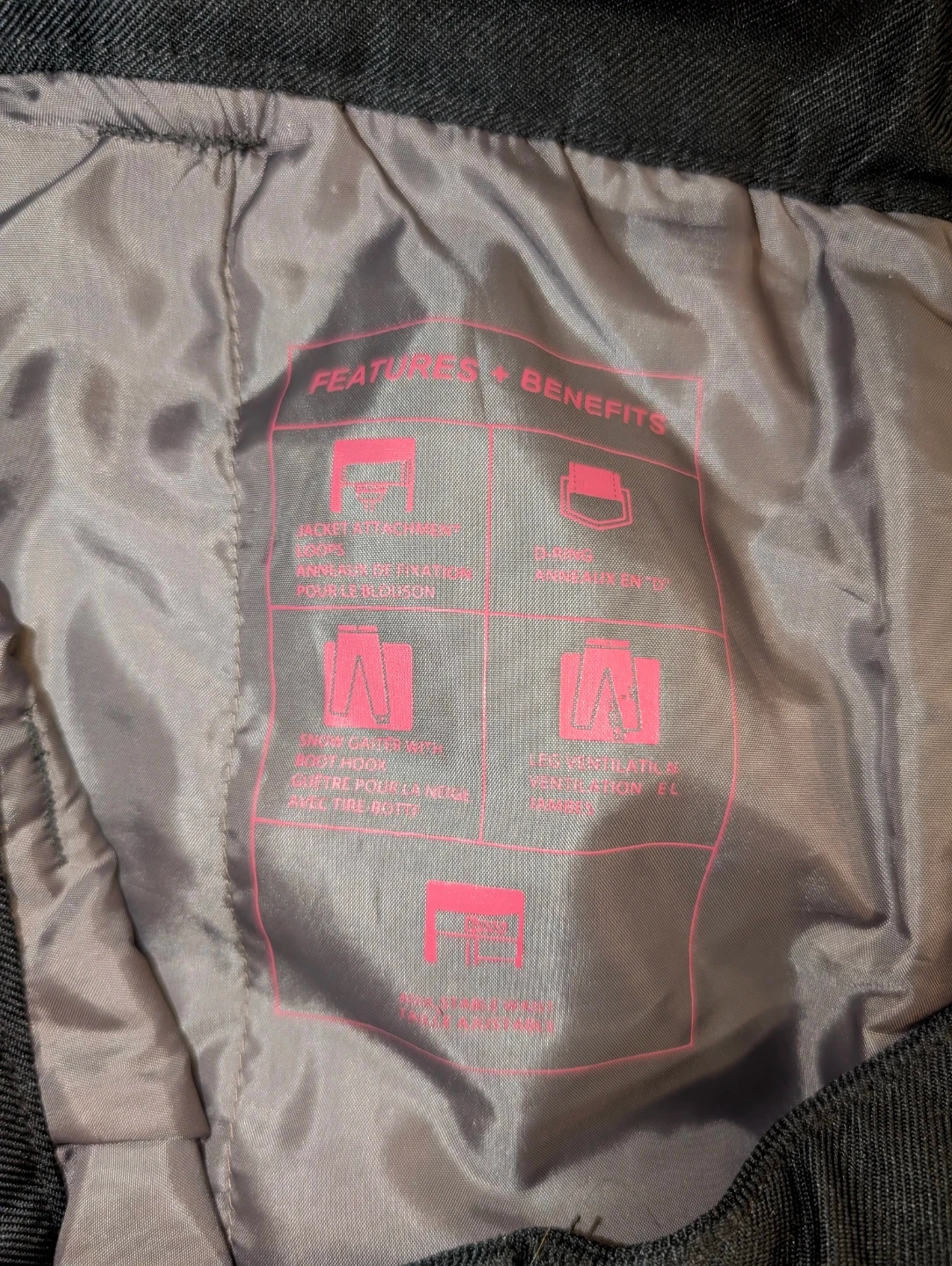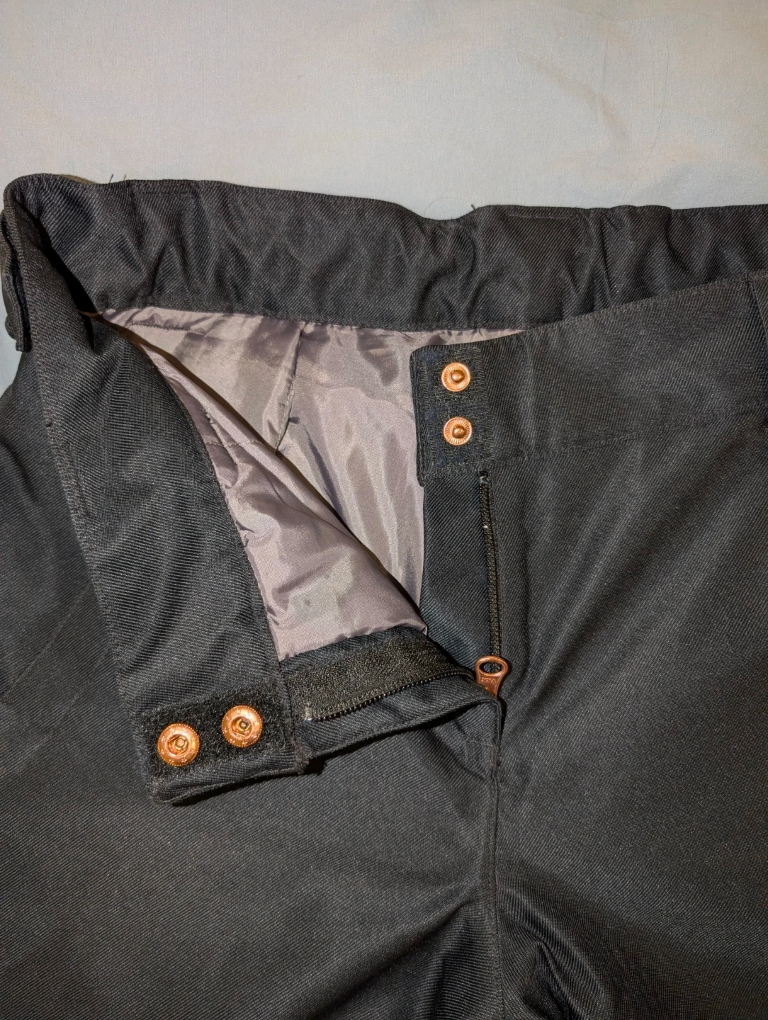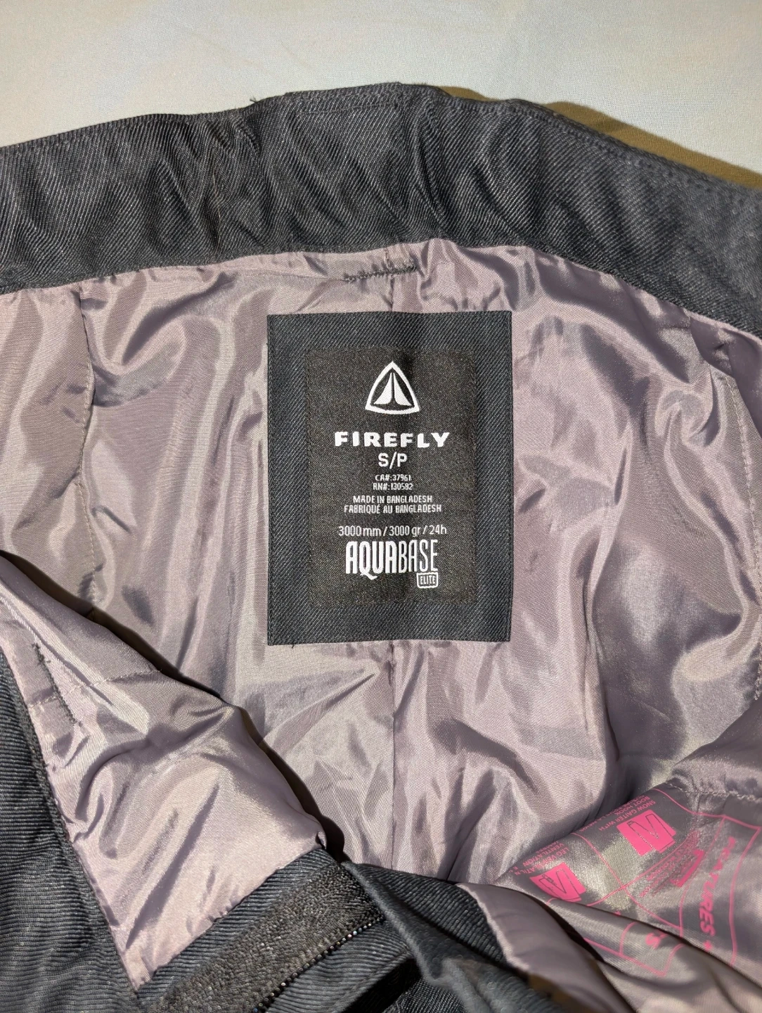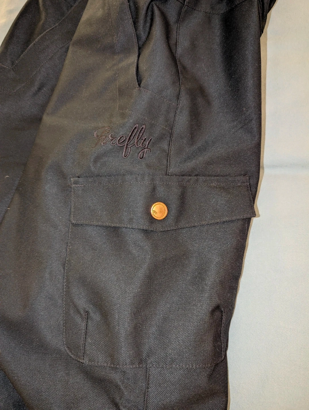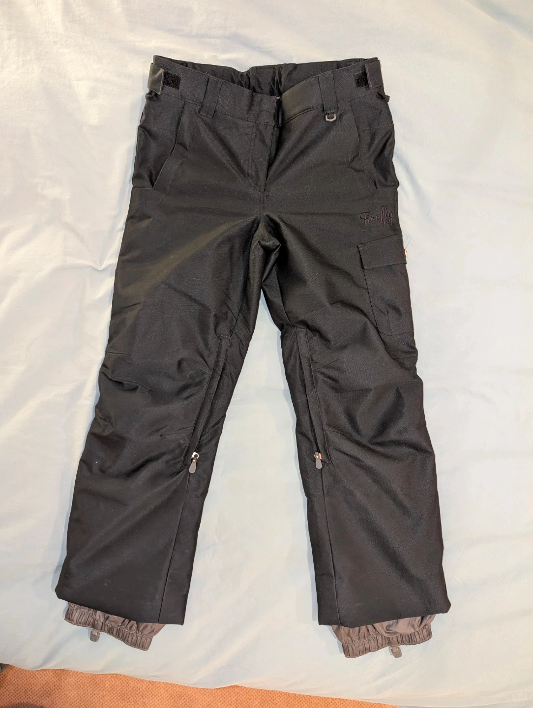 Black ski/snowboard pants by Firefly. It's got zippered vents and cargo pockets. These pants are designed for cold weather activities.