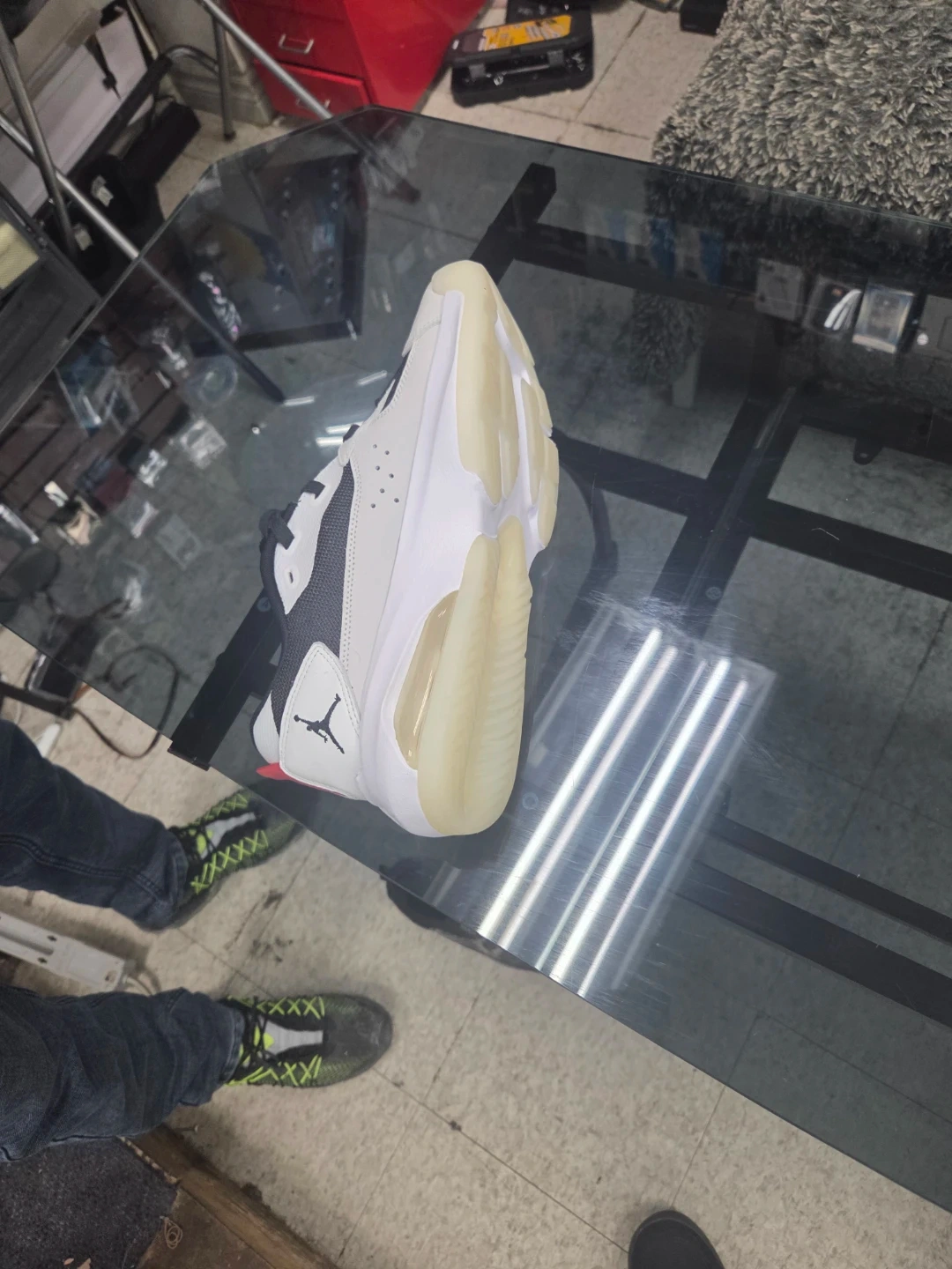 These Air Jordan XXXVI SE men's basketball shoes are size 10 US. They're a white, black, and red colourway with a mesh and leather upper and a visible Air unit in the sole. Great for hitting the court!
