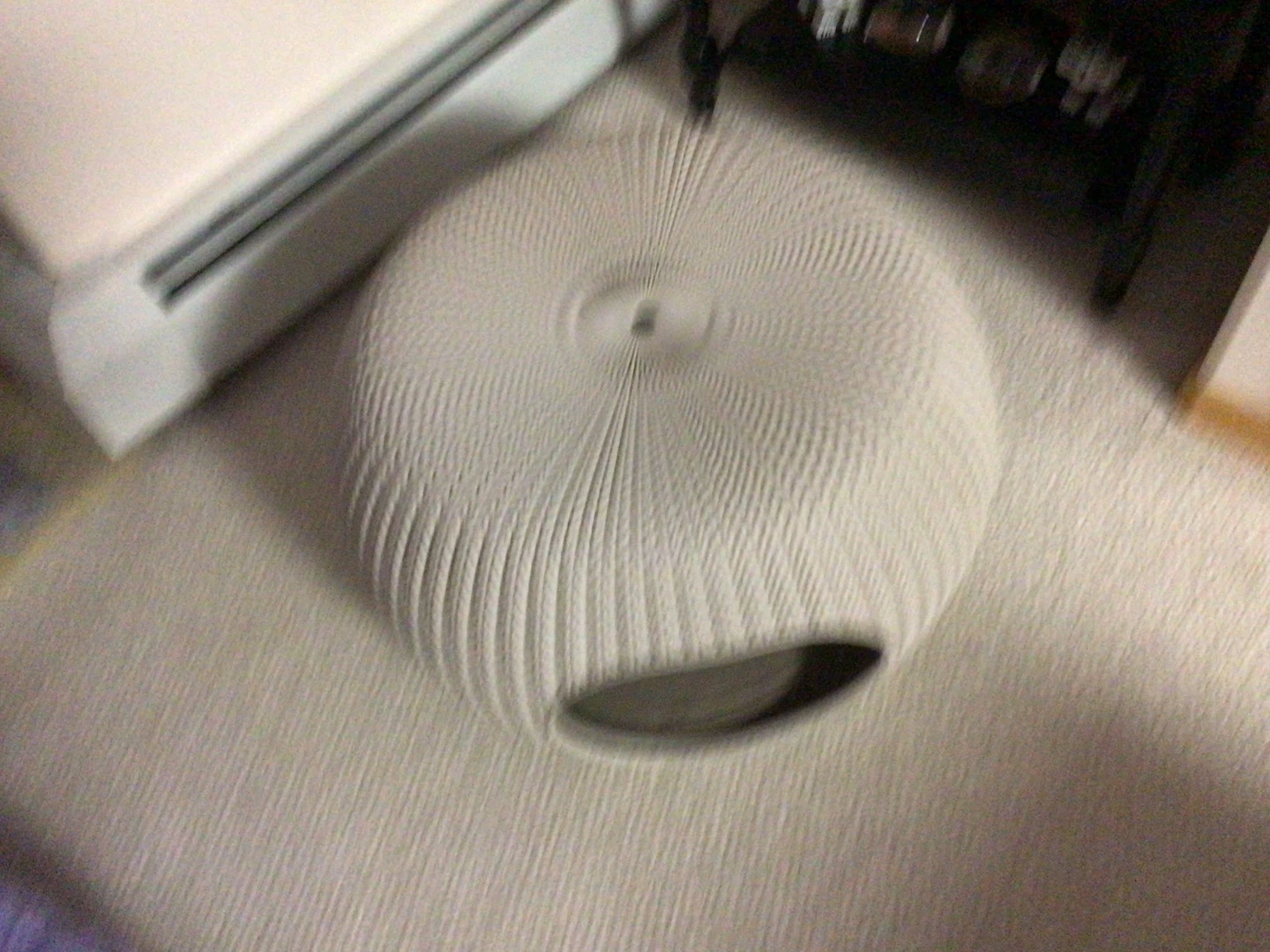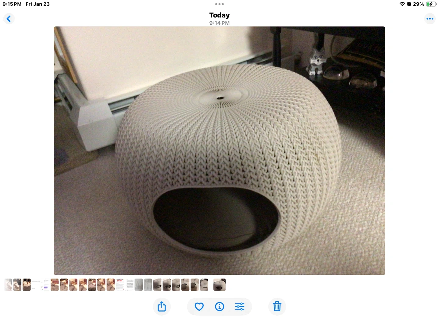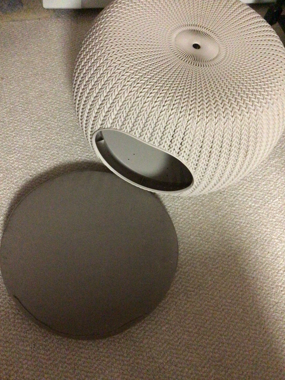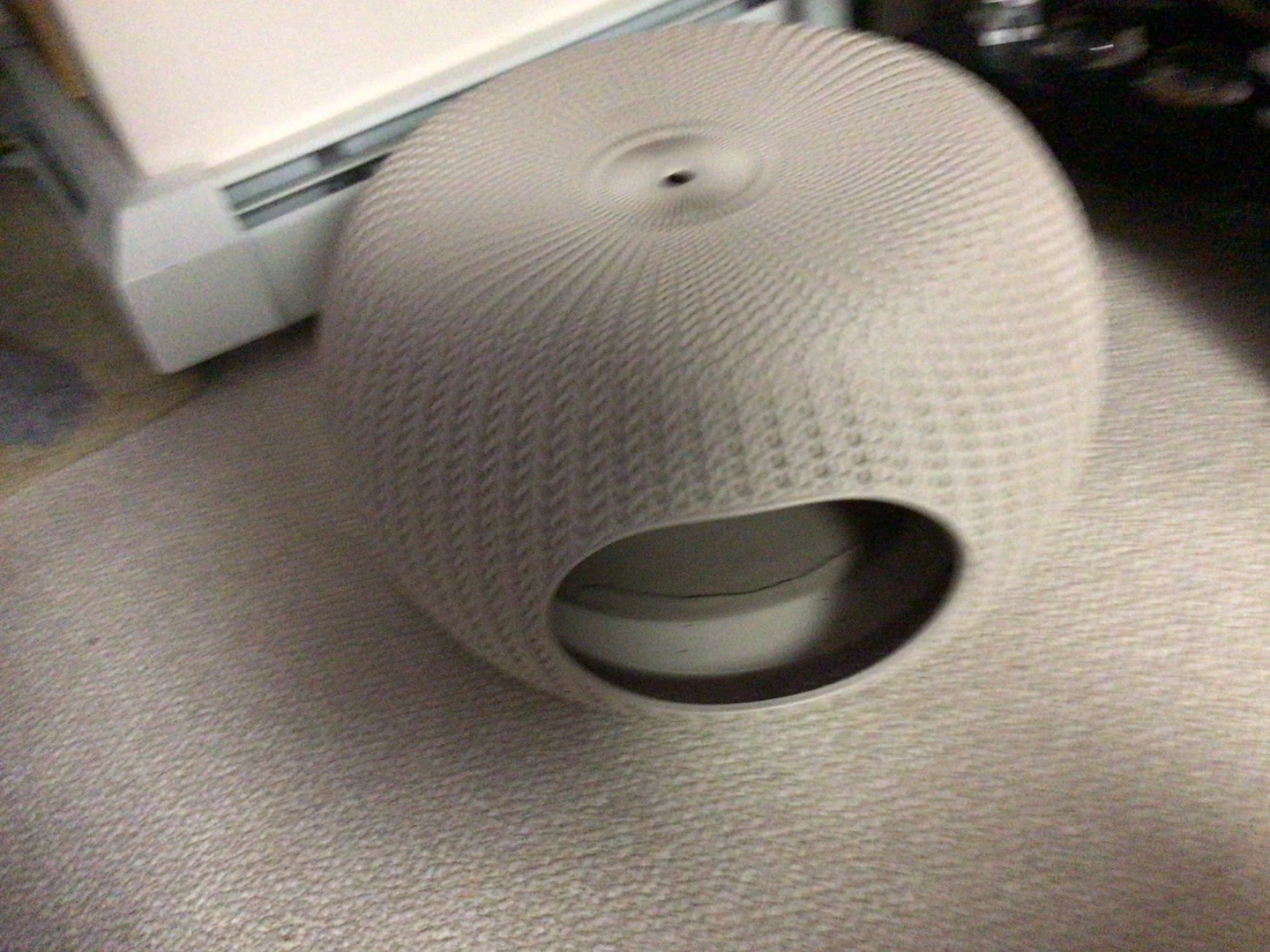 A stylish, textured pet bed or house in a neutral cream colour. It's designed with a unique woven-look pattern. This piece offers a cozy spot for cats or small dogs.
