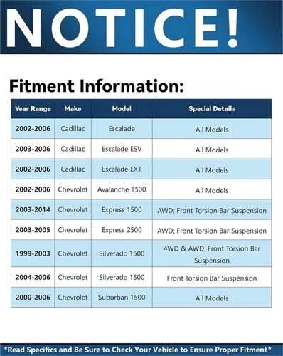 2003-2014 Chevrolet Express 1500 (AWD; Front Torsion Bar Suspension)