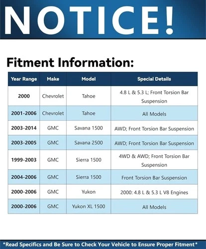 2003-2014 GMC Savana 1500 (AWD; Front Torsion Bar Suspension)