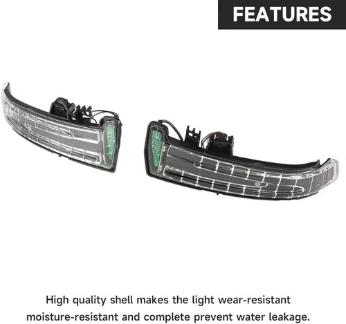 Set of 2 mirror turn signal indicator lights compatible with Mercedes Benz C204 W204 W212. Replaces part numbers A2129067401 and A2129067501. Fits W221 S-Class (2005-2013), W204 C-Class (2007-2013), and W212 E-Class (2009-2013). Please verify your vehicle's make, model, and year before purchasing. These are plug-and-play replacements for the original lights. Features durable ABS plastic housing with a scratch-resistant, UV-treated clear lens for long life and clear visibility. Provides a modern LED look and improves nighttime driving safety. Easy to install with simple tools.