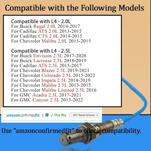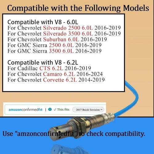 This is a 2-piece set of FTMUKF Oxygen O2 Sensors (Upstream and Downstream) compatible with various Buick, Cadillac, Chevrolet, and GMC models from 2013-2021. They are designed for 2.0L, 2.5L, and 6.2L engines. Part numbers are 234-8080 (Downstream) and 234-8085 (Upstream). These sensors meet OE standards and are made from high-temperature resistant ceramic and metal, capable of operating between -30°C and 600°C. Please verify compatibility with your vehicle's year, model, and engine displacement before purchasing. Let me know if you're interested!