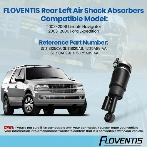 Selling a rear left air suspension shock absorber for 2003-2006 Lincoln Navigator and Ford Expedition. This is a direct replacement part designed to improve ride quality and reduce vibrations. Replaces OEM part numbers: 3L1Z18125CA, 3L1Z18125AB, 4L1Z5A891AA, 6L1Z18A099DA, 6L1Z5A891AA. Let me know if you're interested!