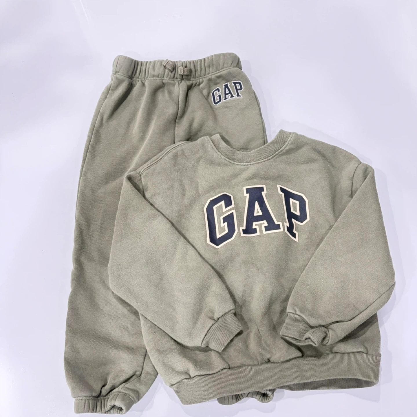 This is a cozy Baby Gap sweatshirt and jogger set. The set is size 4/5 and made from a soft material. It's perfect for playtime or lounging!