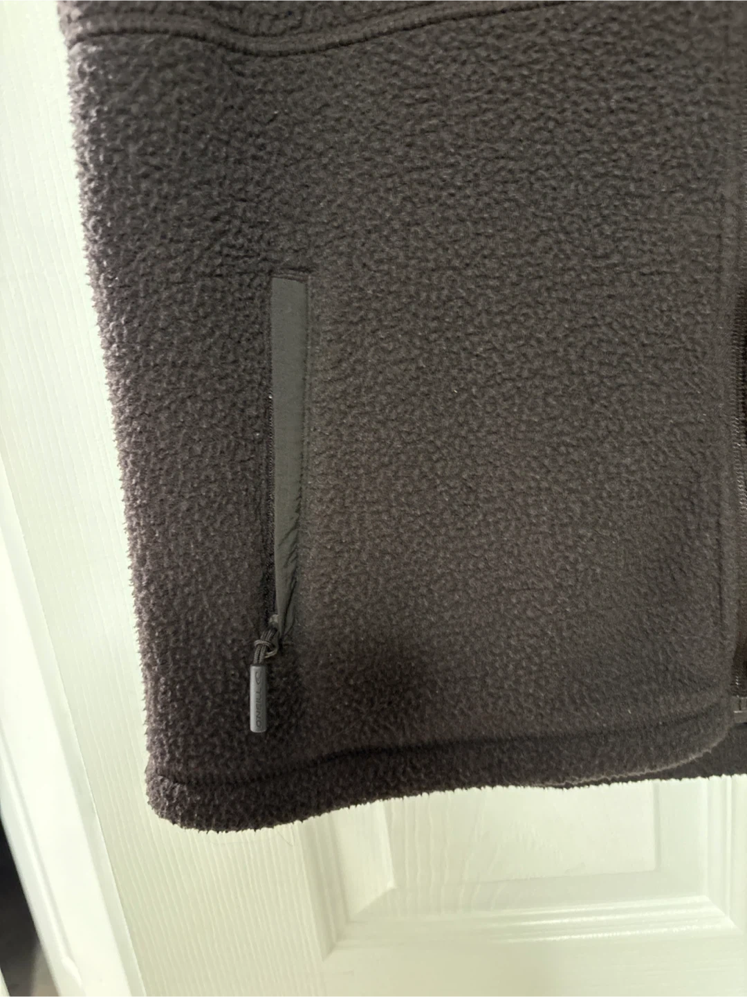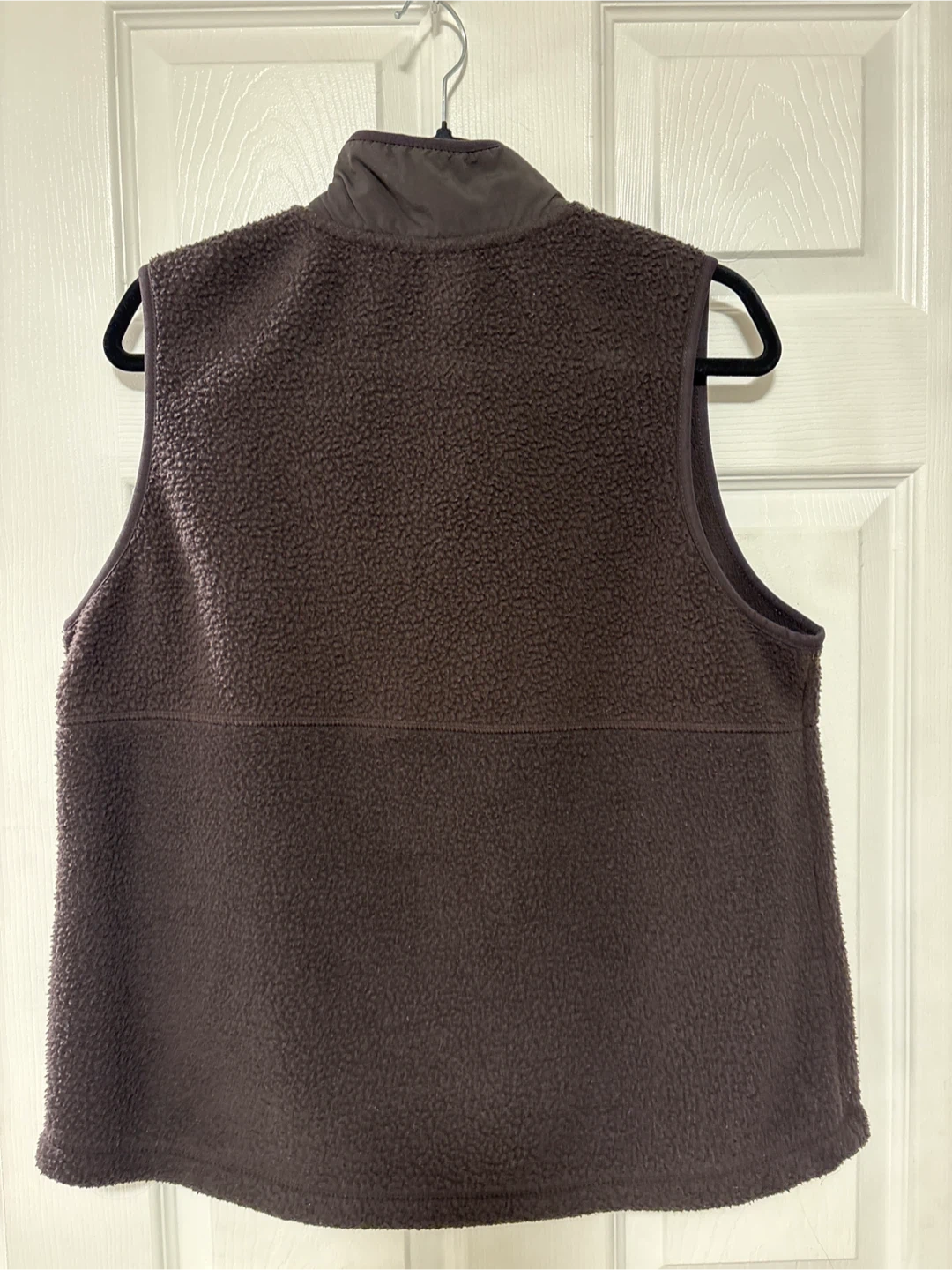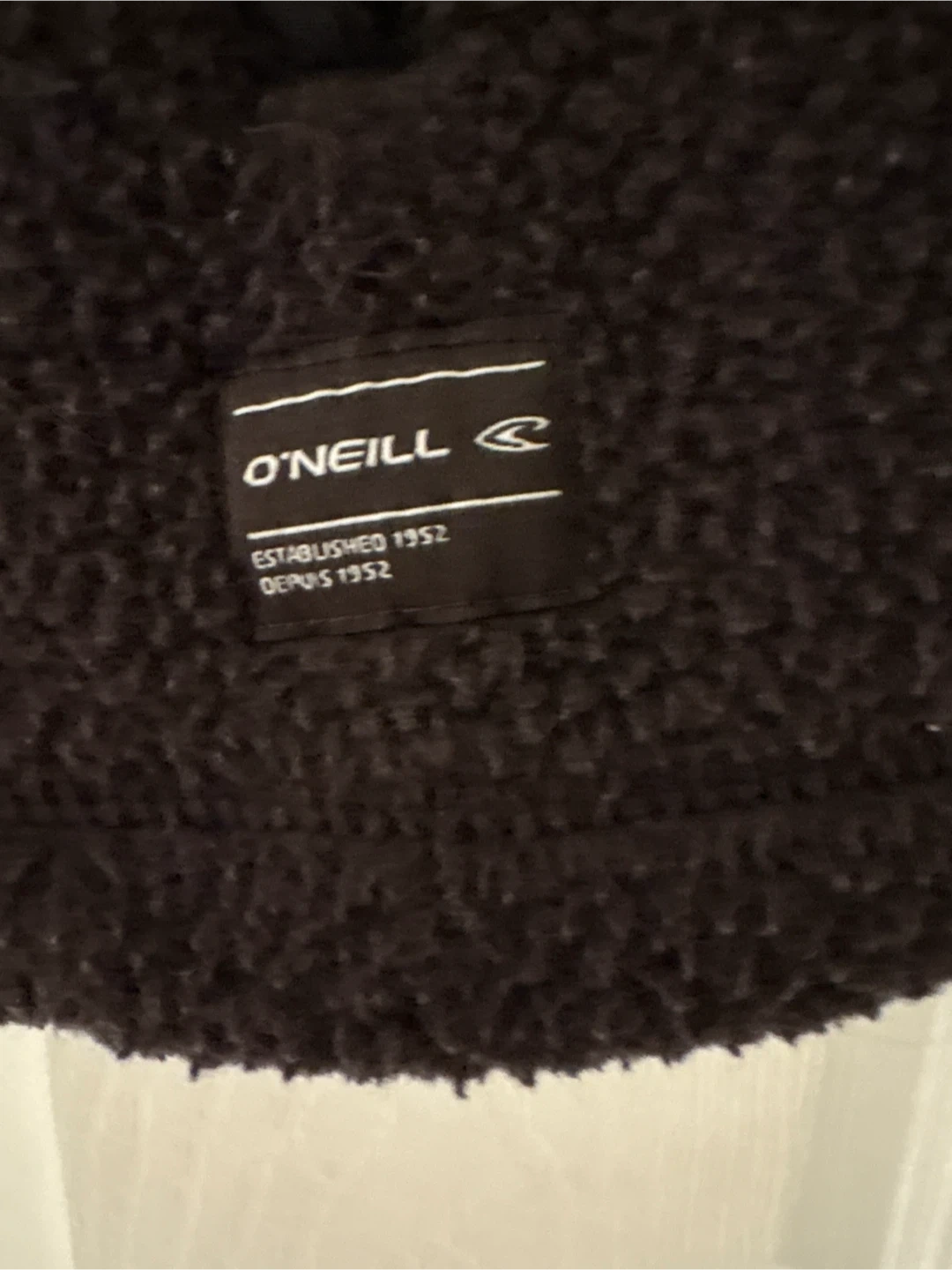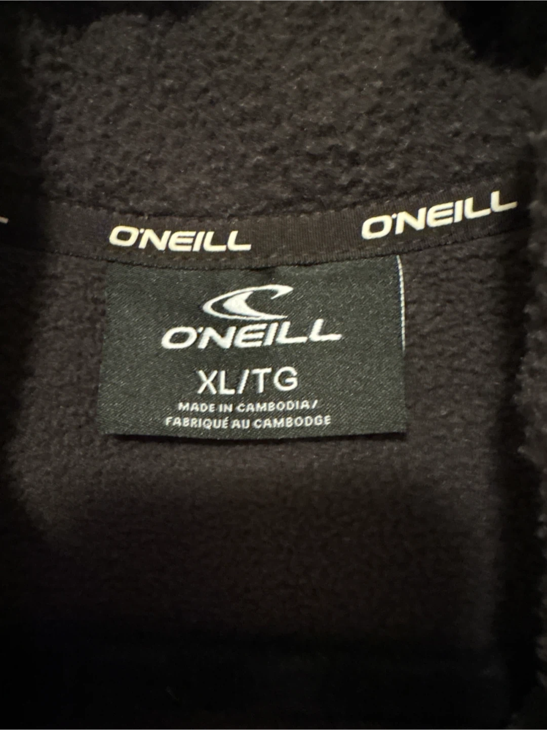 O'Neill zip-up fleece vest in dark brown. It's a size XL/TG. Features two zippered hand pockets and a mock neck. Made from soft fleece material.