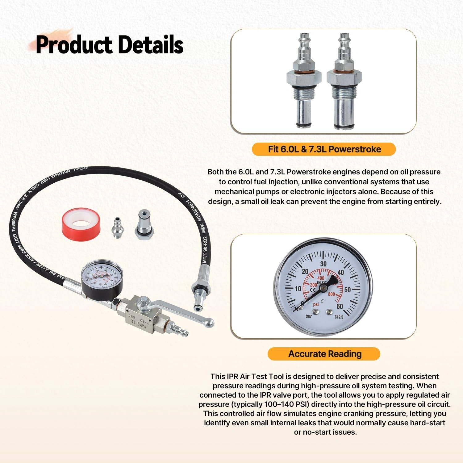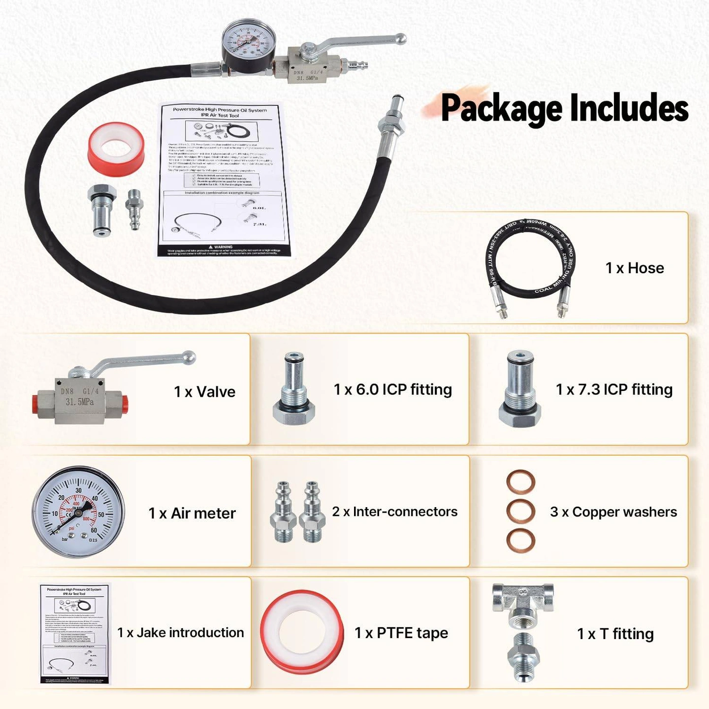 High Pressure Oil System IPR Air Test Tool Special Kit Compatible with Ford 6.0L & 7.3L Powerstroke Diesel Engines, Heavy-Duty Air Test Fitting for HPOP Leak Diagnosis