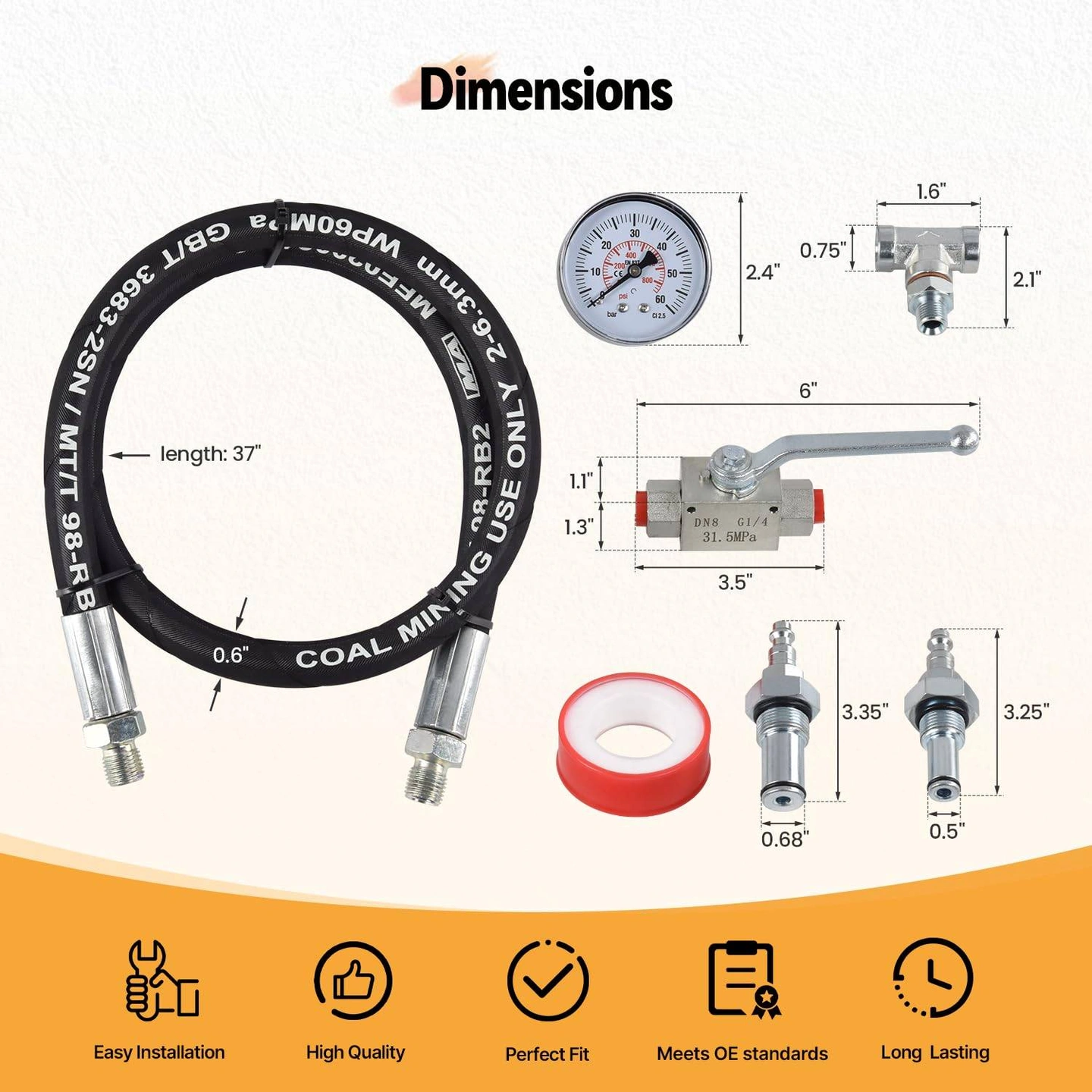 Heavy-Duty Construction for Professional Use: Manufactured from high-quality solid brass and stainless steel, this air test fitting resists corrosion, deformation, and air leakage under high pressure. Each fitting is CNC machined for a precise fit and features reinforced threads for long-lasting durability. The robust design ensures stable performance even under repeated shop use, making it ideal for both professional diesel mechanics and enthusiasts.