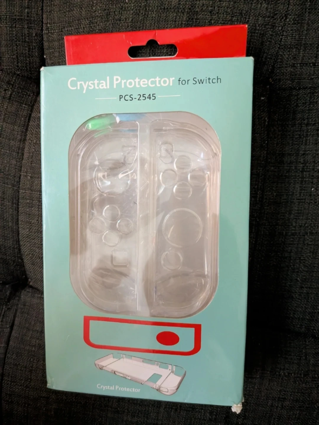 This crystal protector is designed for the Nintendo Switch. It includes the main body protector, a case for the Joy-Cons, and four colorful joystick caps. Made from high-quality, clear material for better protection. It's a clear protector for your Nintendo Switch console.