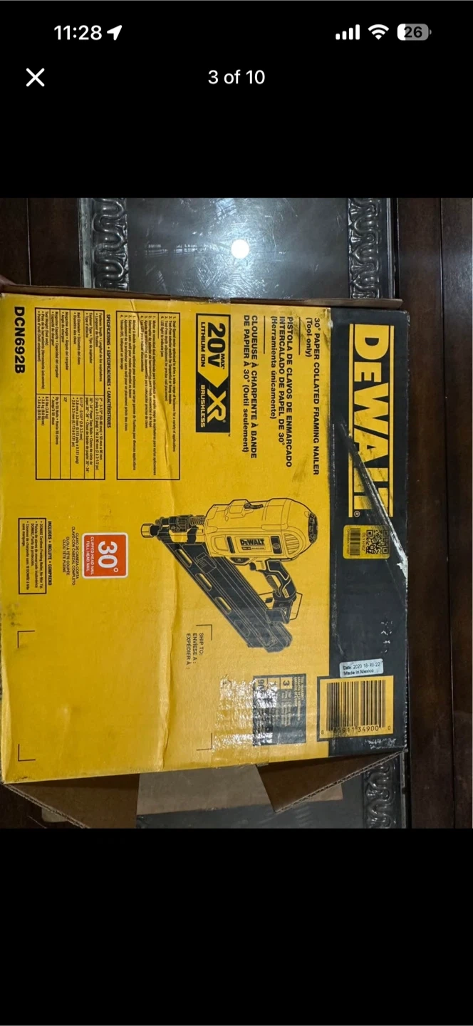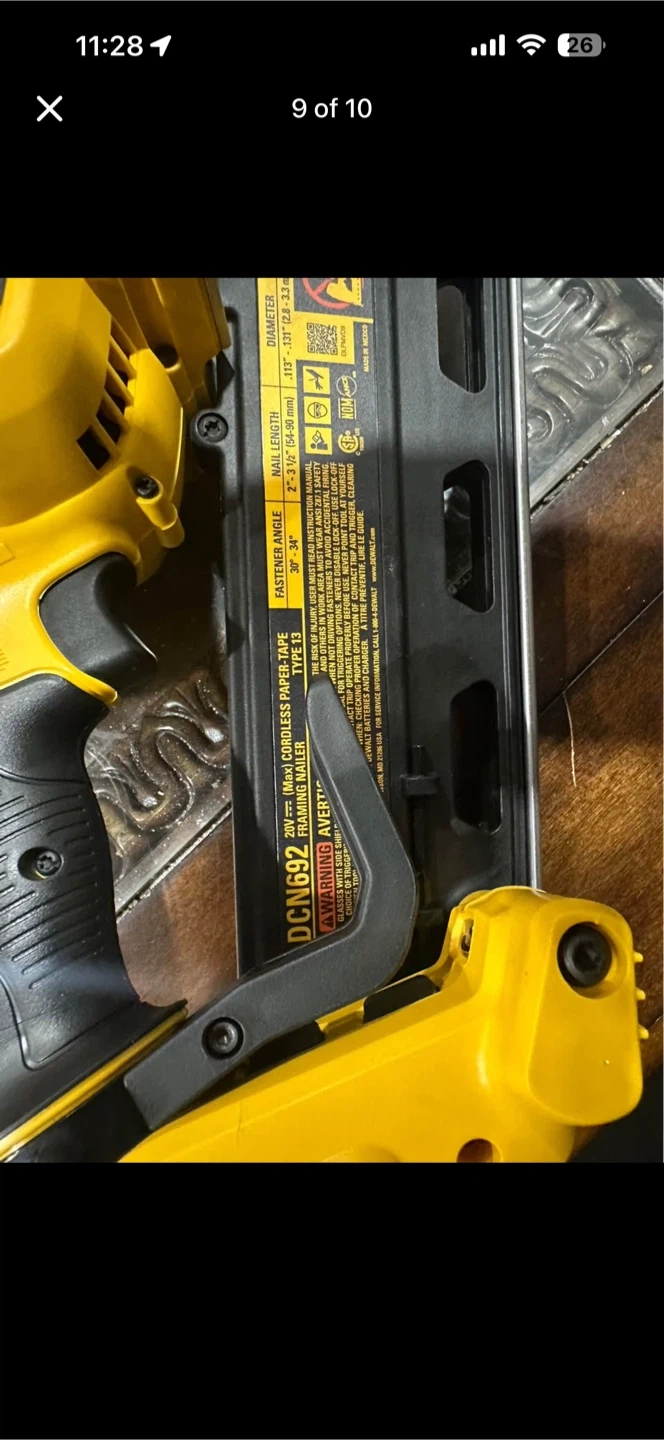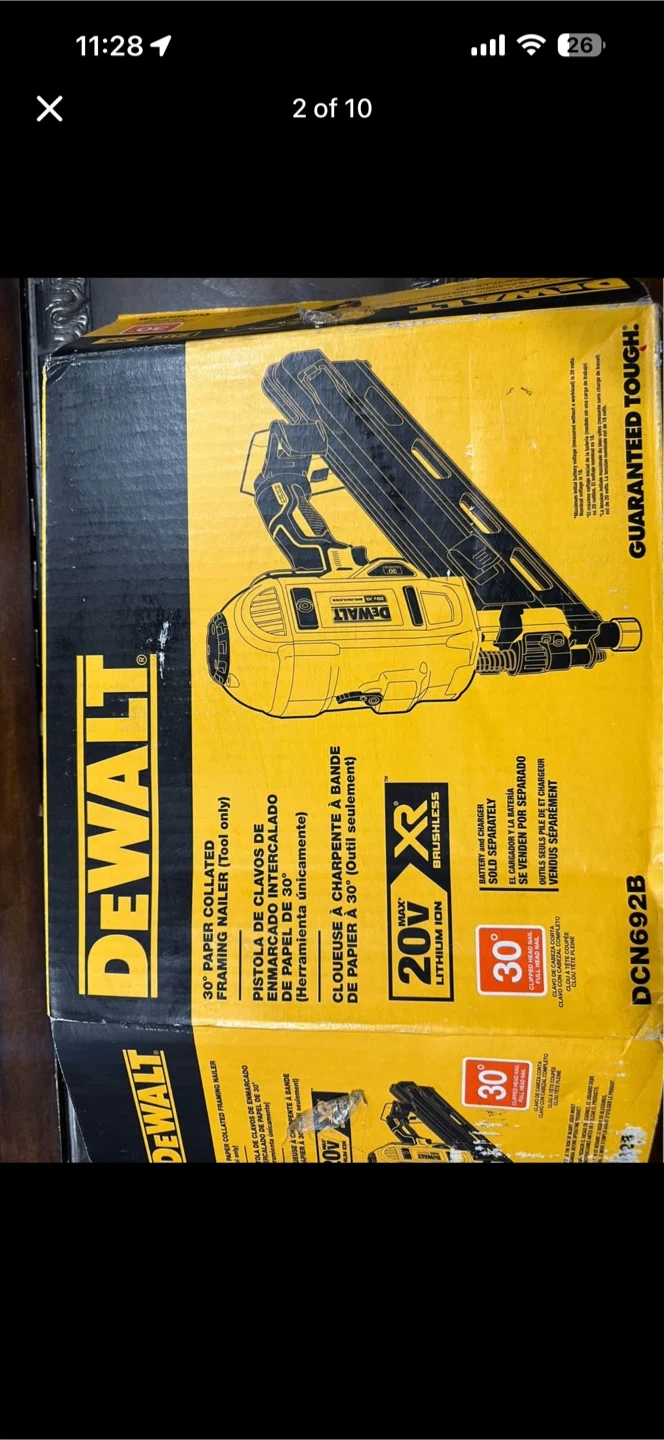 DEWALT 20V MAX XR Brushless 30° Paper Collated Framing Nailer DCN692B This is a DEWALT 20V MAX XR brushless 30° paper collated framing nailer. It's the DCN692B model and is a tool-only unit. This nailer is designed for professional framing applications.