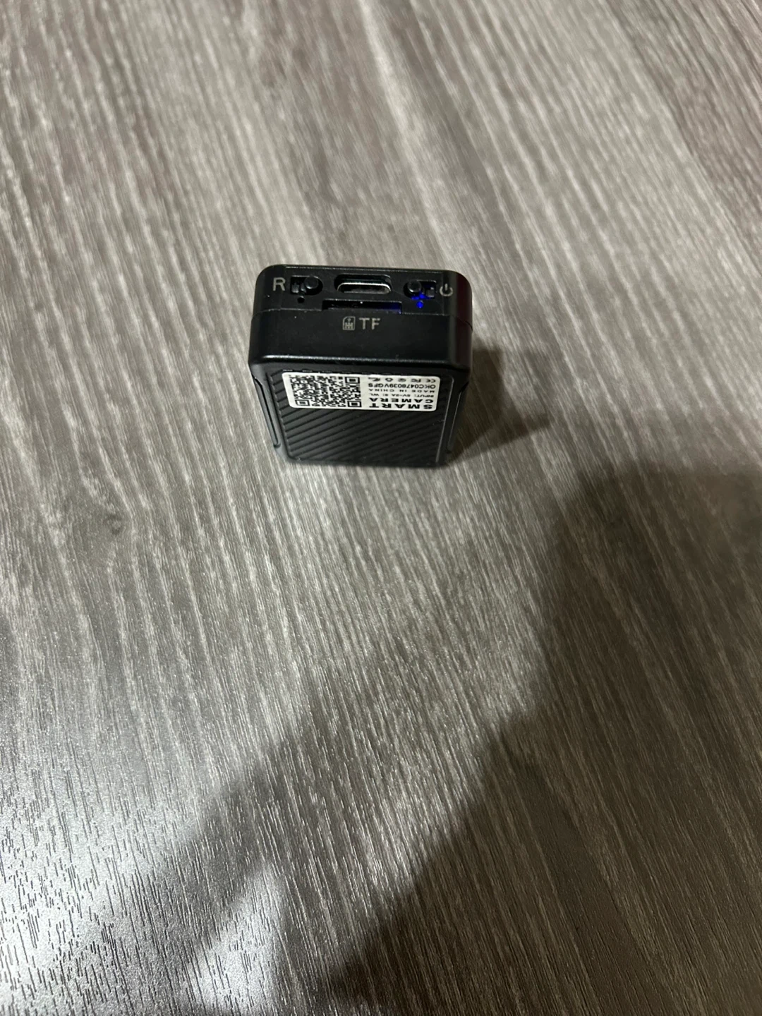 This is a new compact smart camera. It has a lens on the front and a TF card slot. The input is 5V-2A.