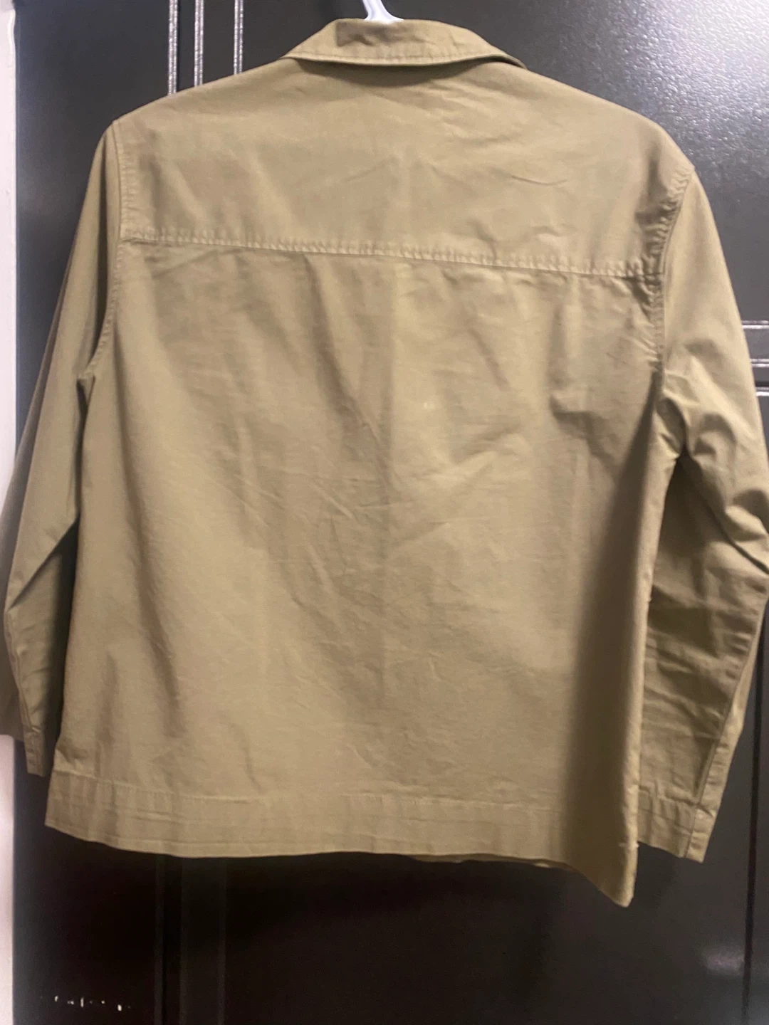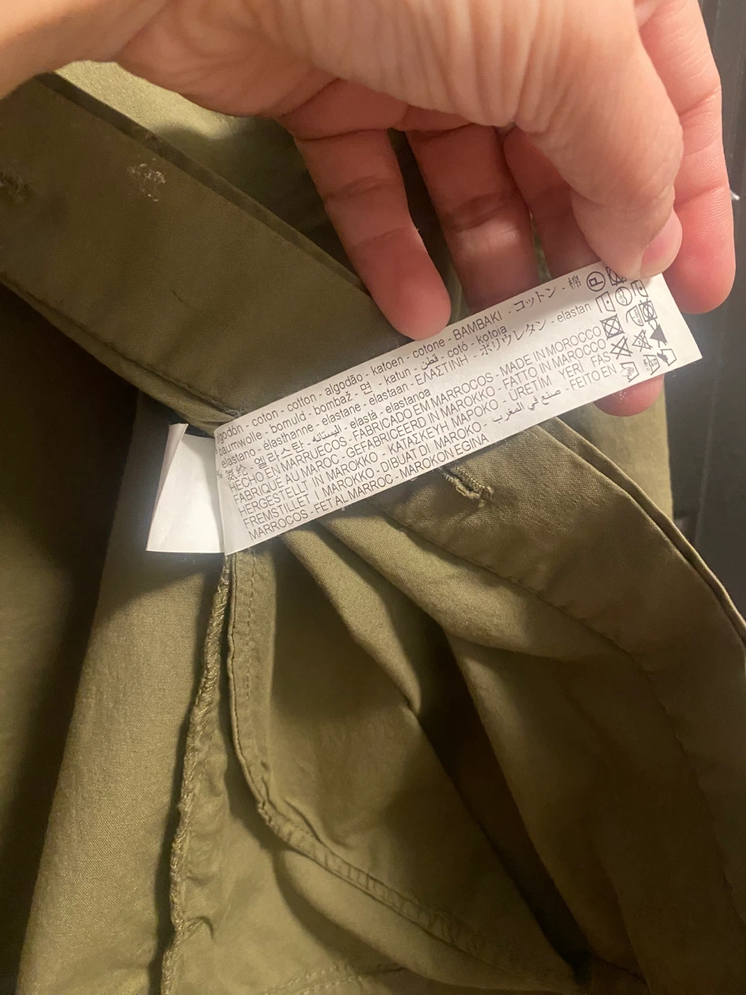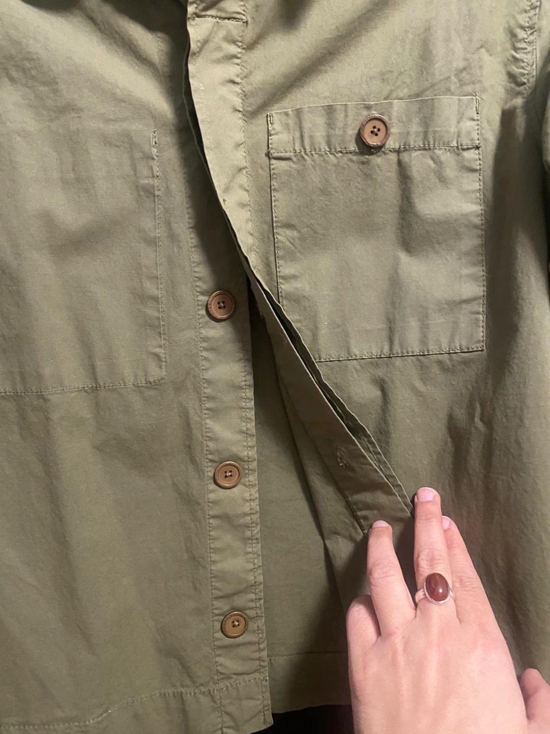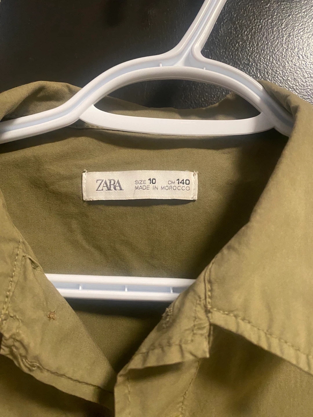 ZARA olive green shirt jacket with two front chest pockets and 2 sides pockets and button closures. Made in Morocco. Size 10 / CM 140.