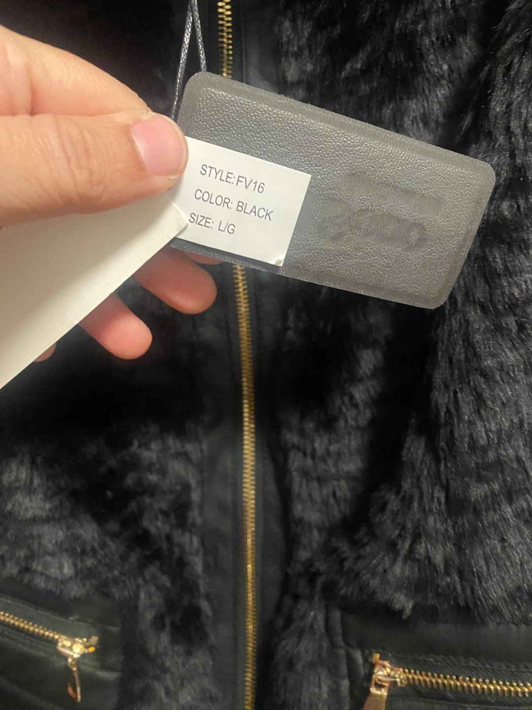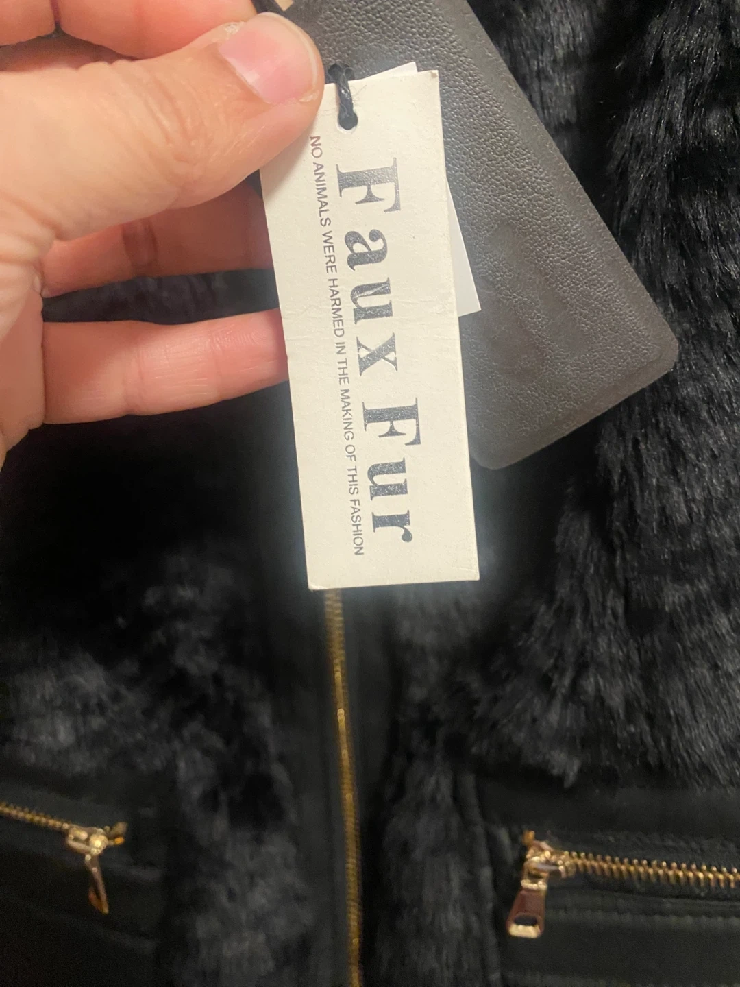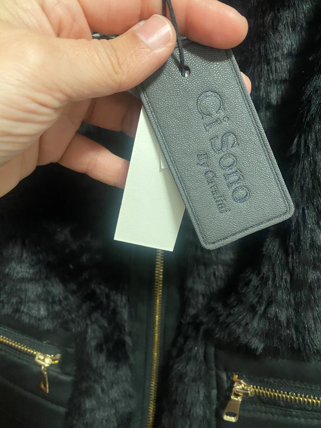 New / Unused Ci Sono Black Faux Fur & Faux Leather Vest