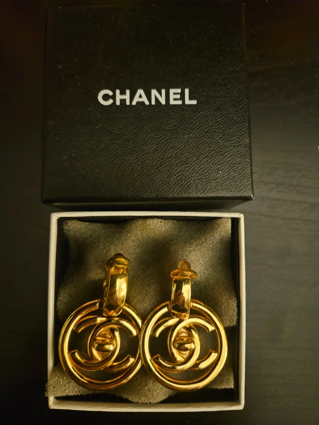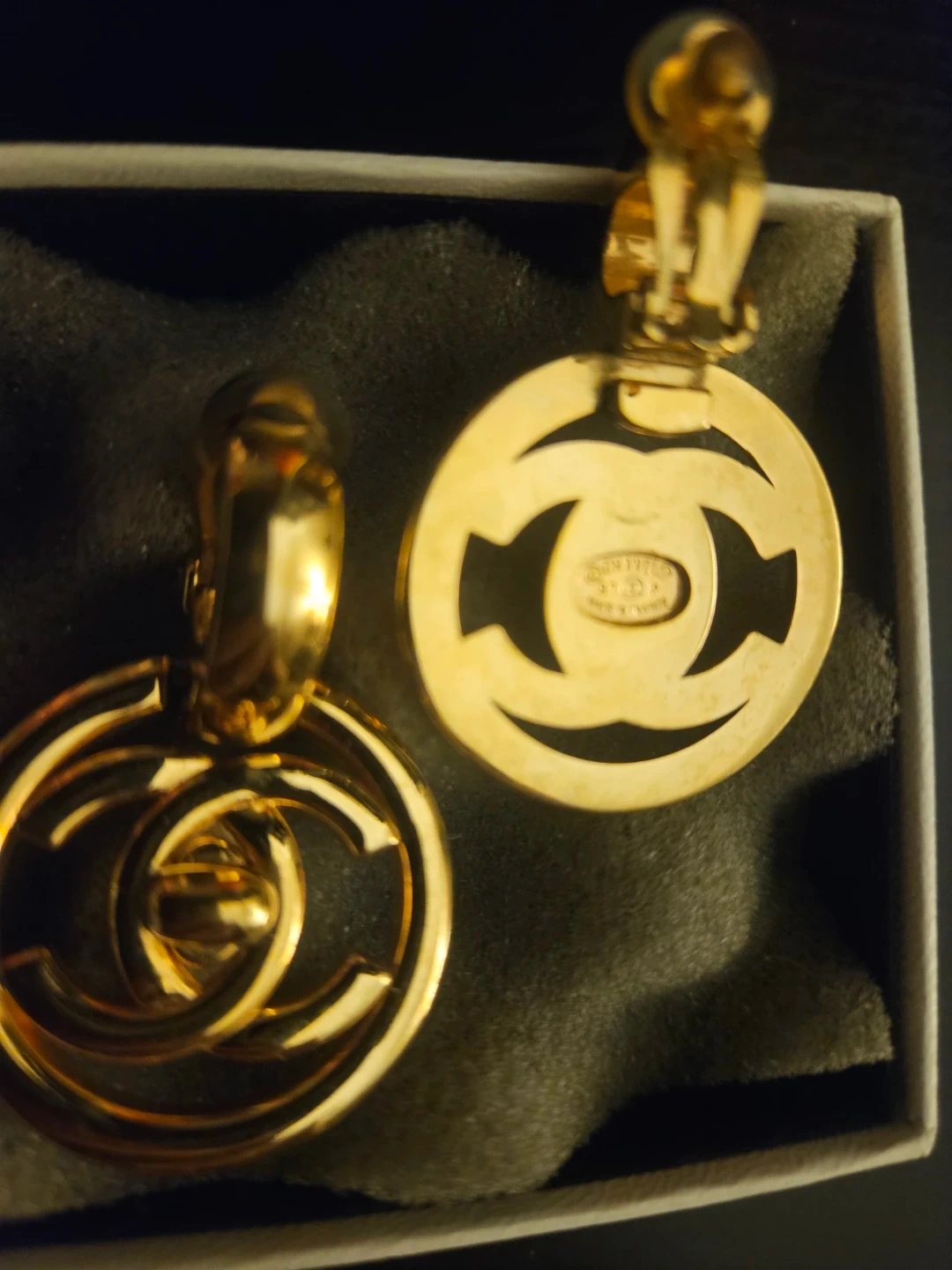 Classic CHANEL clip-on earrings in a gold-tone finish. Features the iconic interlocking CC logo design. Comes with original box.Chanel CC XL Turnlock Round Clip On Earrings Gold Plated 97P Pendant Authentic