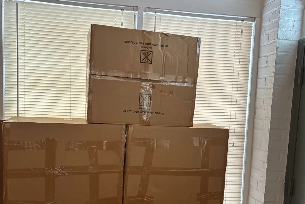 Set of 4 Brand new in box Brown Faux Leather Bar Stools