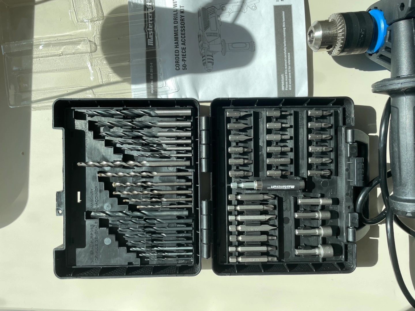 Mastercraft 6A Corded Variable Speed Hammer Drill & 50-pc Screwdriver & Drill Bit Set, 1/2-in.