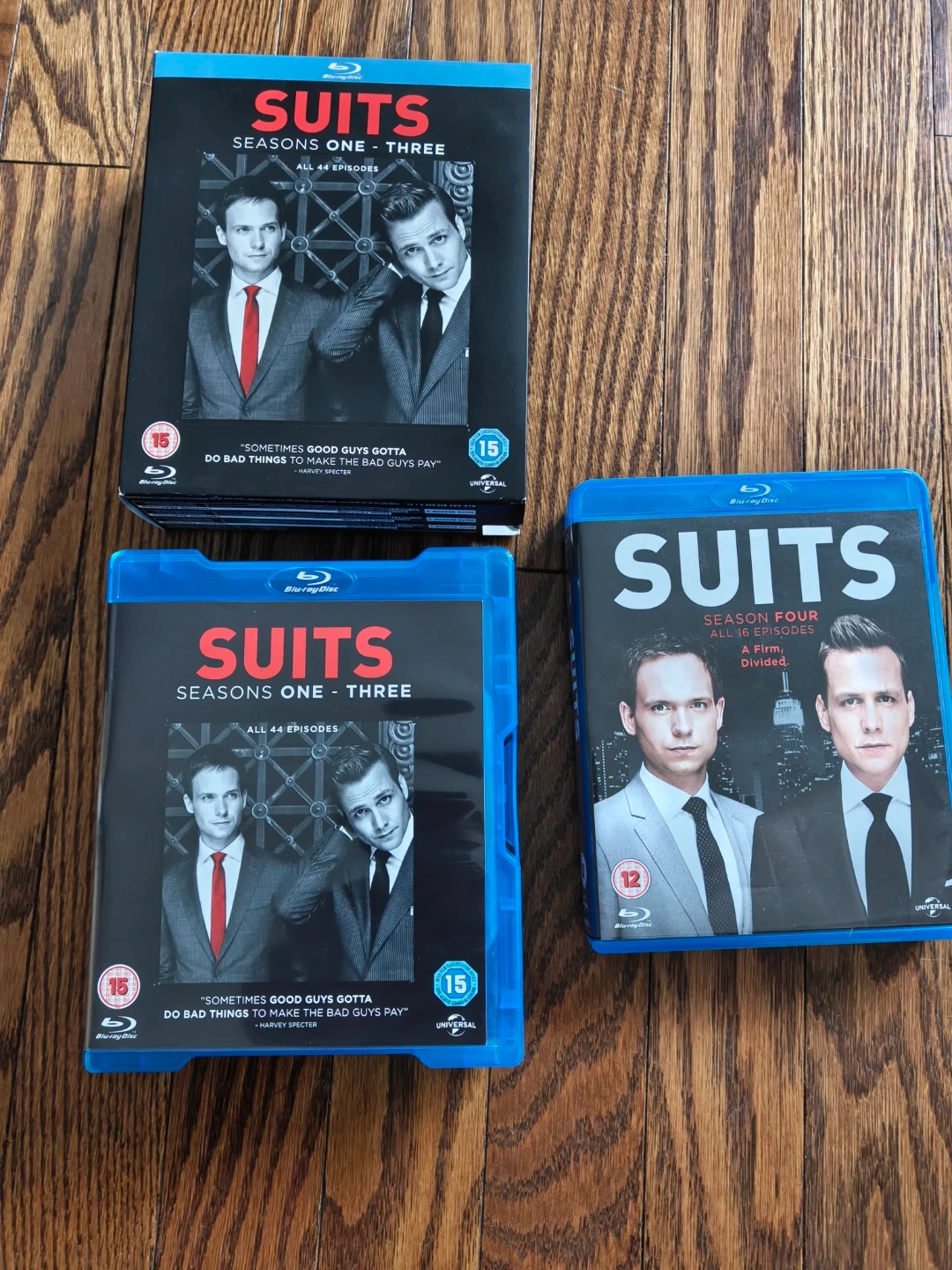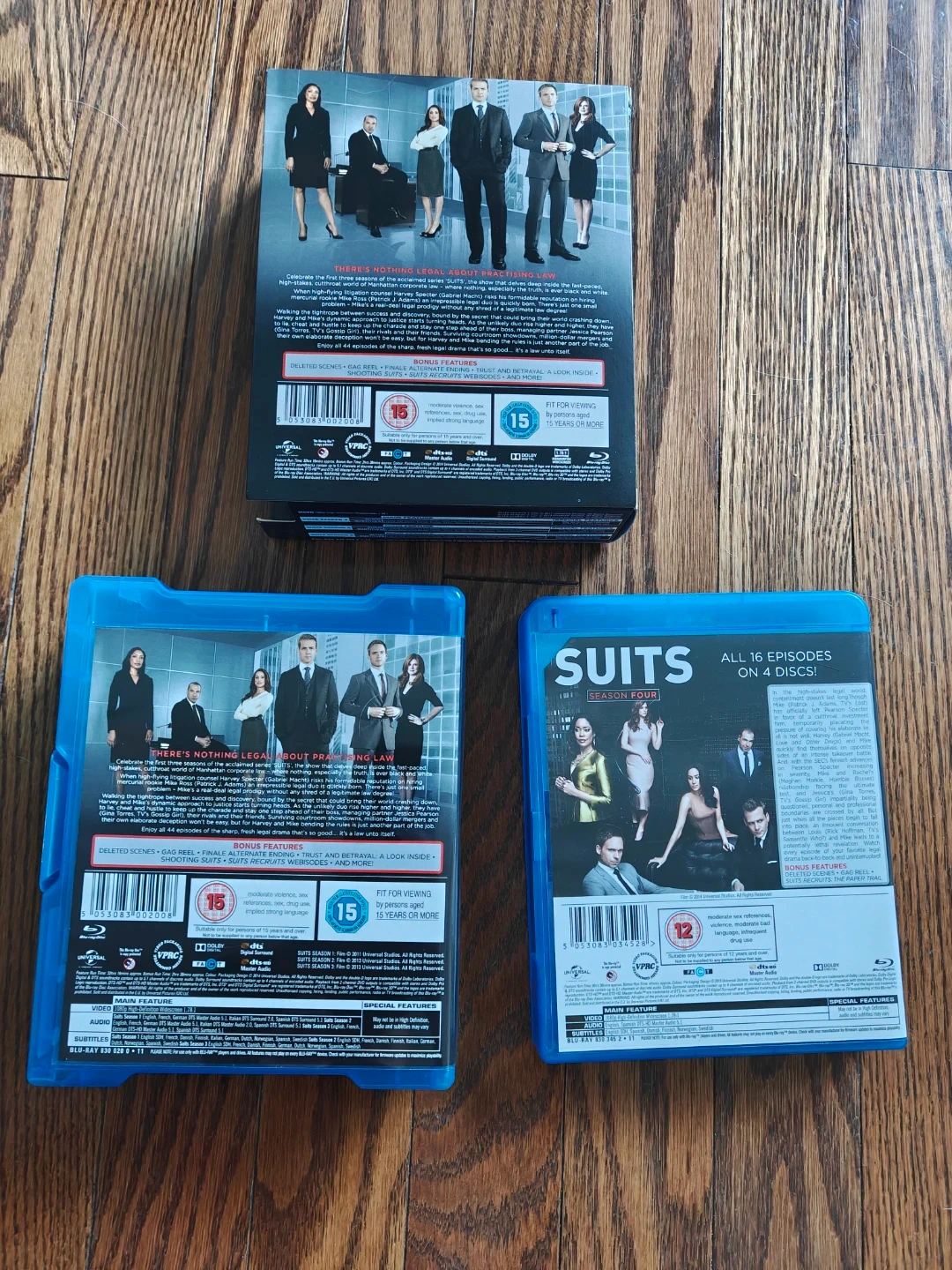 Includes SUITS Seasons 1-3 on Blu-Ray, containing all 44 episodes. Also includes SUITS Season 4 on Blu-Ray with all 16 episodes on 4 discs. A great collection for fans of legal dramas! This is a region free Blu-ray and will play on any Blu-ray player, including PlayStation.
