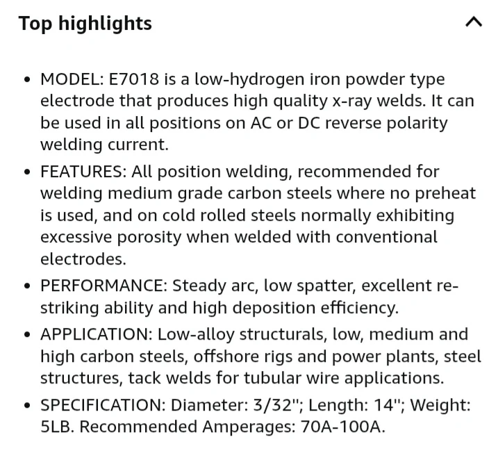 This is a 5lb box of YESWELDER E7018 low hydrogen carbon steel stick welding rods. The diameter is 3/32". They're AWS certified for superior quality welds. The rods come in a professional, strong plastic case for easy storage and to keep them in good condition.