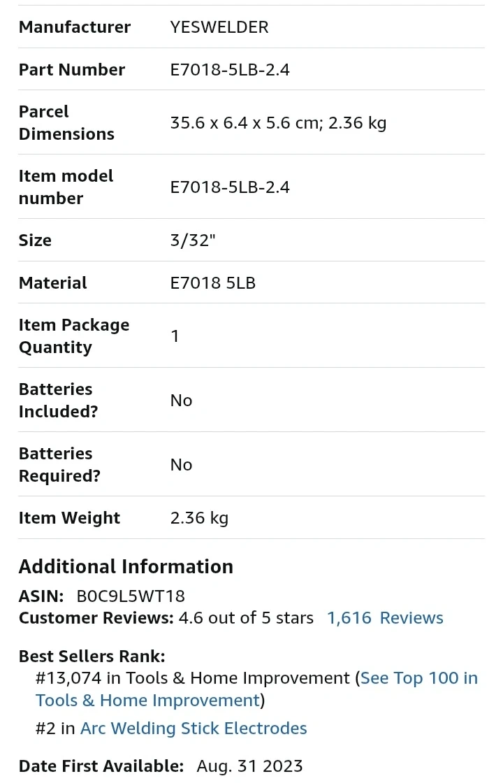 NEW! YESWELDER E7018 5LB Welding Rods 3/32"
