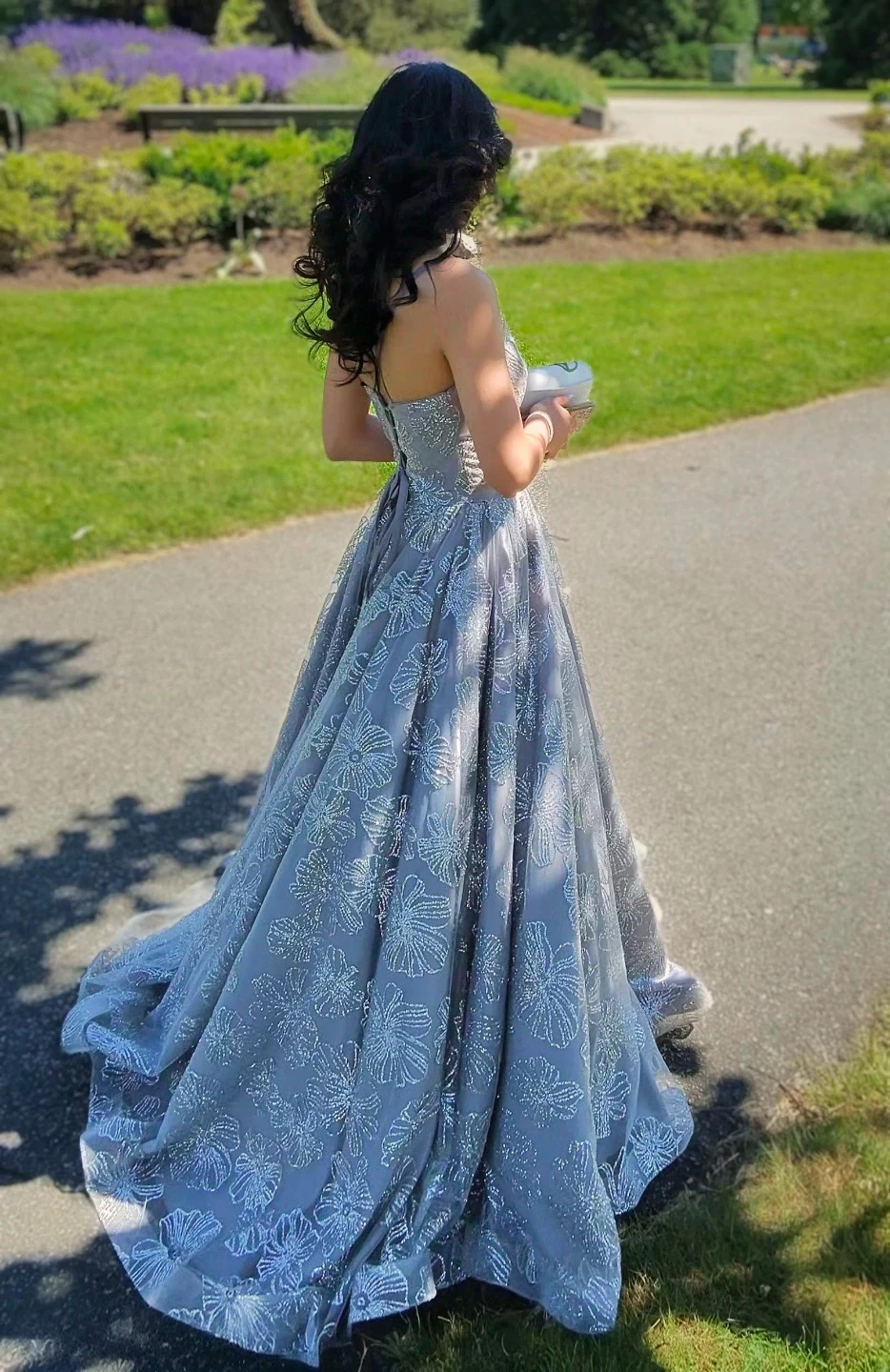 Elegant Grey Floral Prom Dress