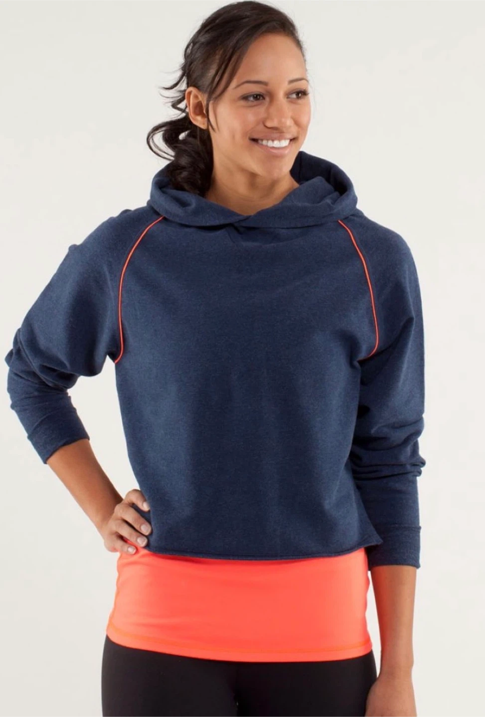 Lululemon Navy Blue Cropped Hoodie with Orange Piping