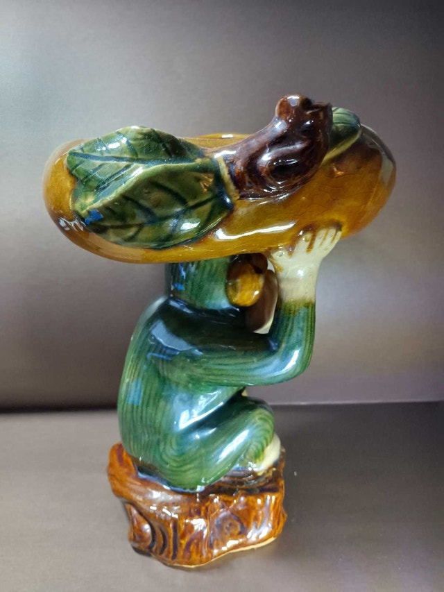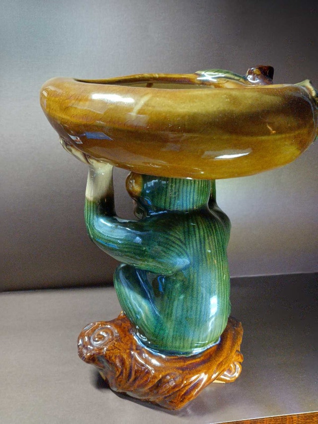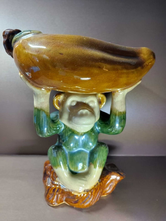 This vintage monkey planter is a unique and eye-catching piece. The detailed ceramic design features a monkey holding a banana-shaped bowl, perfect for plants or decorative items. Please note this is a used item and has some wear and minor imperfections. I think this adds character, but please see the photos for condition. Monkeys are so cute! Also great for holding bananas, if plants are not your thing. If the ad is still up, it's still available! Cash accepted.