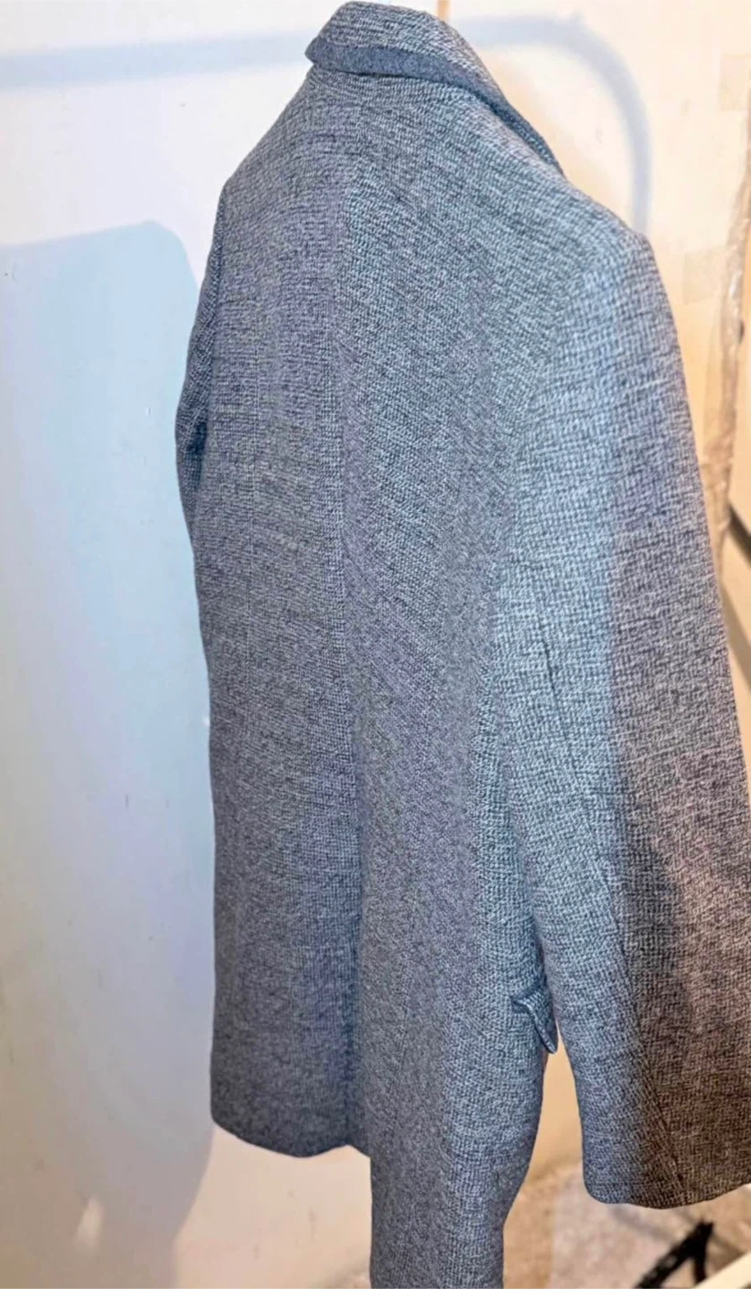This CLOVIS coat features a grey herringbone pattern. It's made with a wool blend for warmth and comfort. Two front pockets and a smooth lining add to its design. Women’s Long coat is in excellent condition. Doesn’t fit me anymore. Size S.