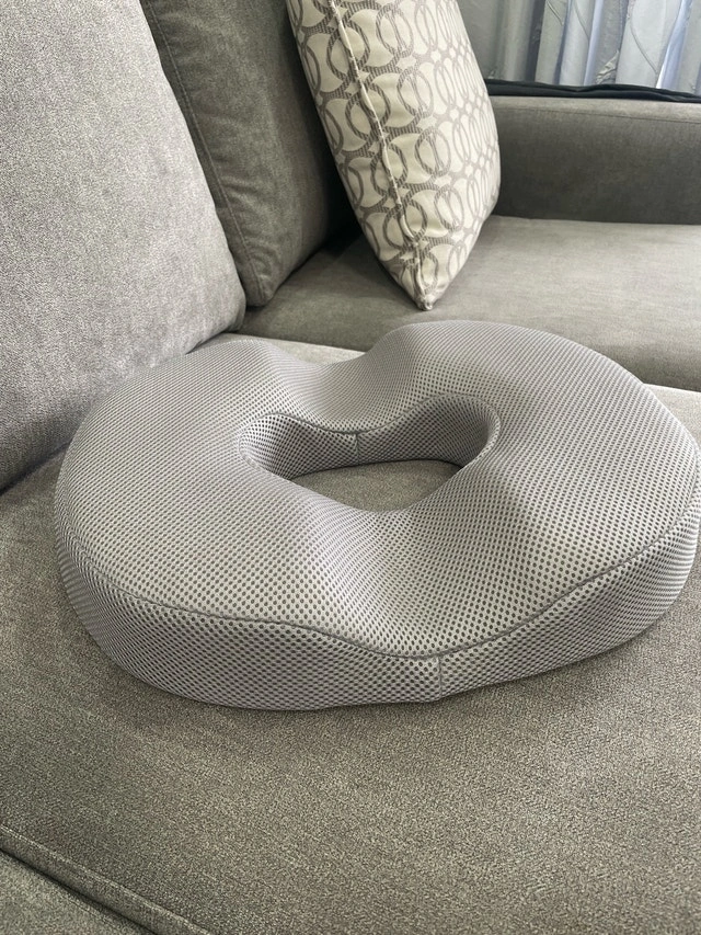 This memory foam seat cushion is designed to provide comfort and support while sitting. It features a unique ergonomic design that helps to alleviate pressure on the tailbone and promote proper posture. It's in used condition, but has been gently used. It’s lightweight and portable, making it easy to take with you wherever you go. Features include: high-density memory foam, removable and washable cover, non-slip bottom, and ergonomic design. If the ad's up, it's still up for grabs!