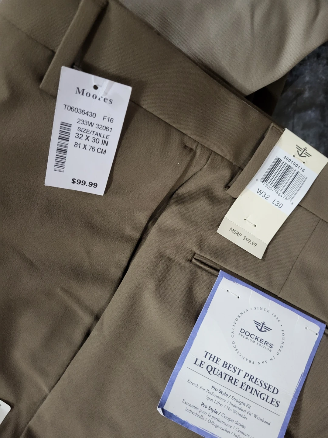 These are Dockers Premium Collection pants. They come in size 32x30. These pants offer a straight fit with Pro Style and are wrinkle-resistant.