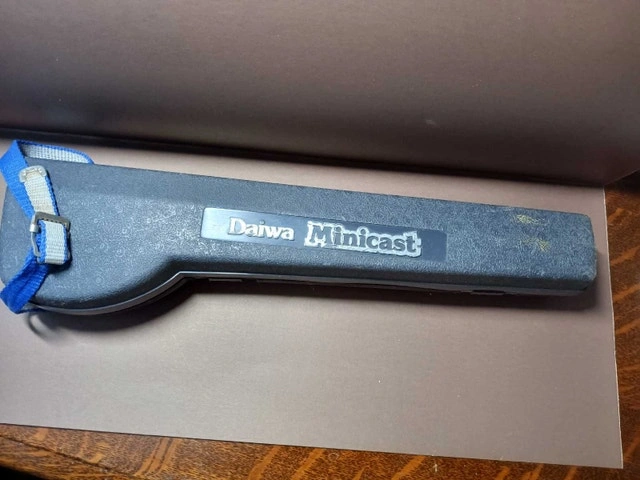 Casting back to simpler times with this Daiwa Minicast, a blast from the past for fishing enthusiasts! This used rod and reel combo, complete with its original case, is ready for a new adventure. Though it shows some signs of age, it's still eager to hit the water and make some memories. Because life's too short to fish with boring gear, isn't it? Compact and portable design, classic spincast reel, and a multi-piece rod for easy storage. If the ad's still floating, then yes, it's still available!