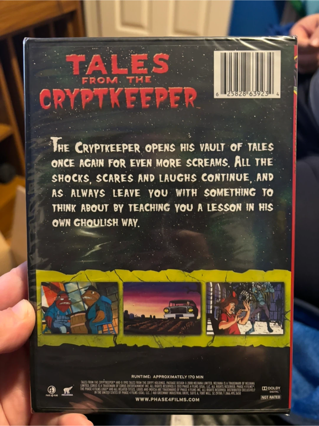 Tales from the Cryptkeeper: Myth Conceptions DVD includes exclusive episodes. The runtime is approximately 170 minutes. This DVD offers a collection of spooky and funny stories. It's perfect for horror fans looking for a good scare!