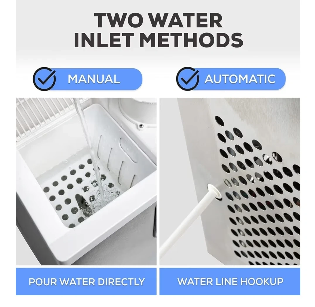 This portable ice maker offers high capacity and quick yield, producing up to 44lbs of ice daily. It features a 1.7qt reservoir and instant ice on demand. It also has a food-grade ice basket and an observational window to monitor ice levels.