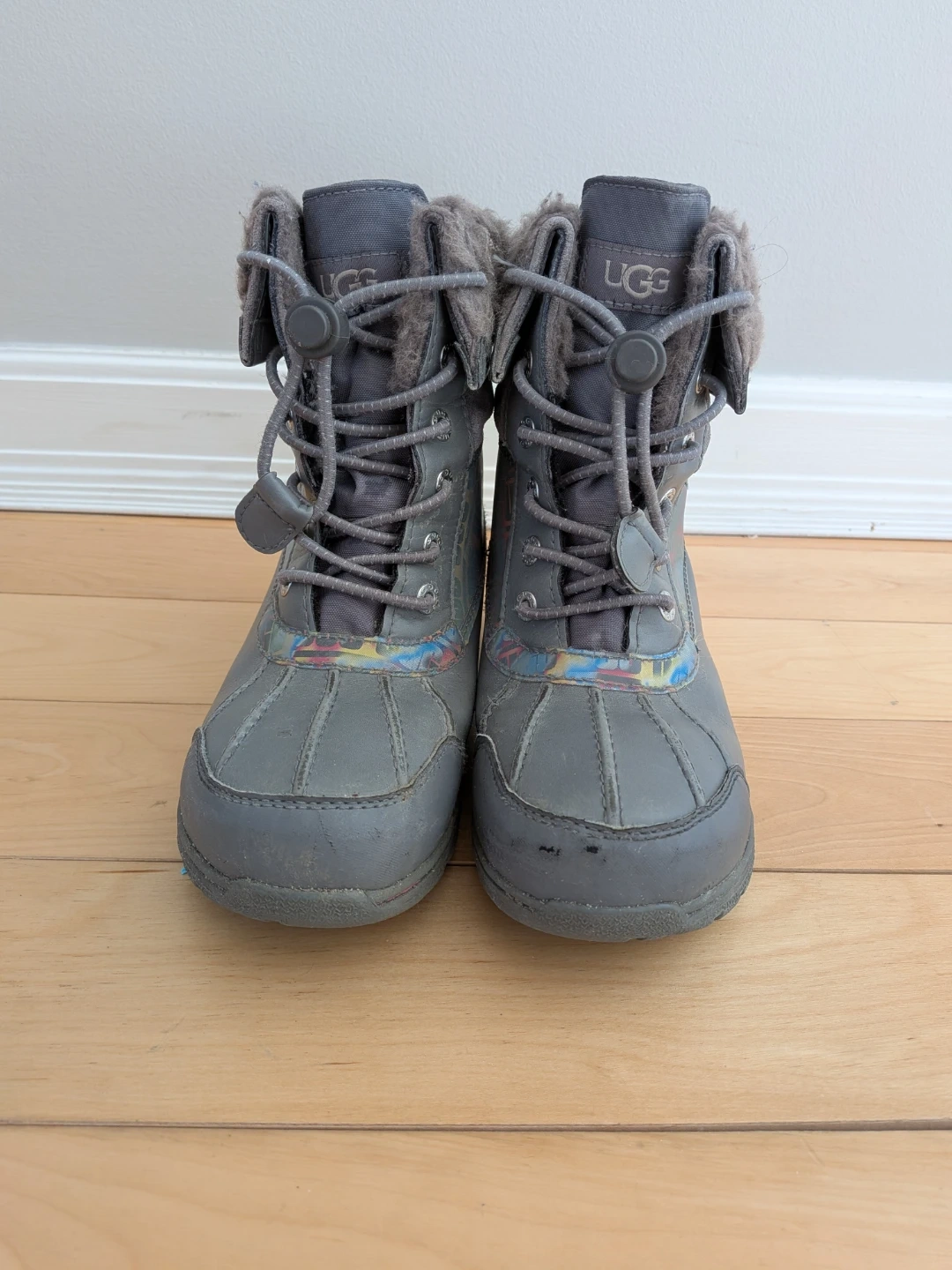 UGG K Butte li Chromatic snow boots for kids. Grey colour. Size US 3, EU 35, UK 2. These boots feature a warm, furry lining and a durable sole.