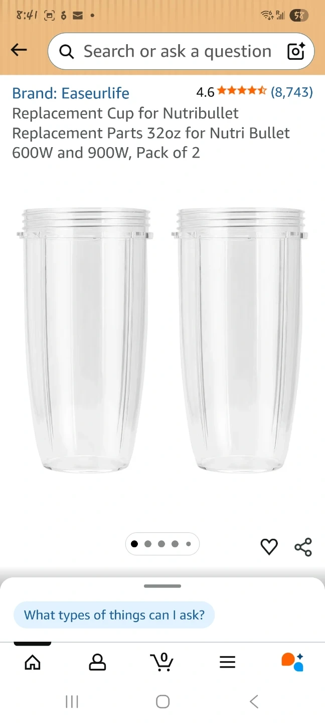 Set of two clear plastic replacement cups for NutriBullet blenders. These 32oz cups fit 600W and 900W models. BPA-free material.