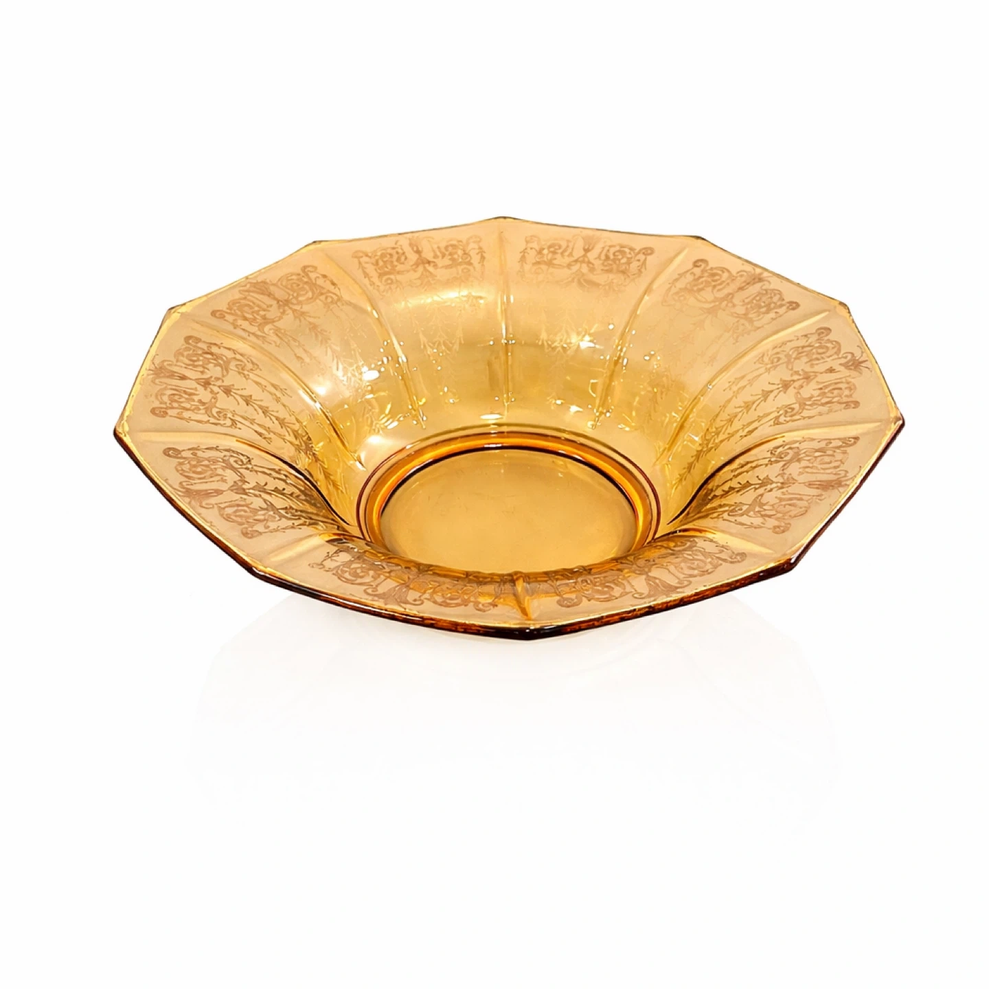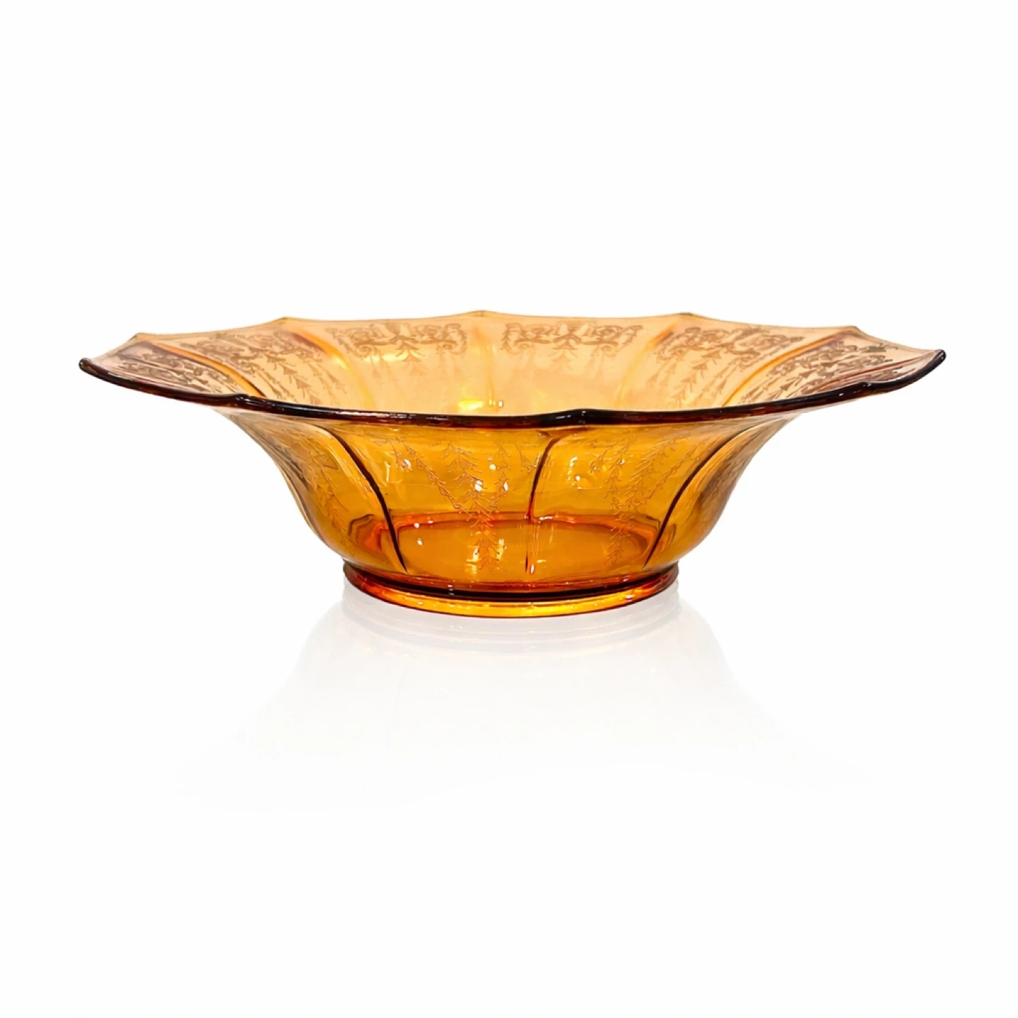 Amber etched Cambridge glass is increasingly sought after, particularly pieces with strong geometry, intact etching, and confirmed marks. This bowl works equally well as a table centerpiece, console display, or cabinet piece, and photographs exceptionally well under natural or gallery lighting.