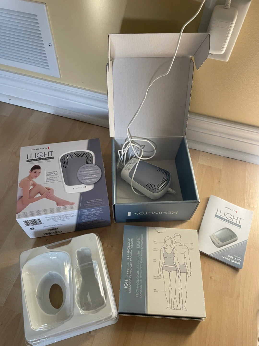 This Remington iLIGHT device uses Advanced Triggerless Technology for permanent hair reduction. It's clinically proven and FDA cleared. Includes the main device, power cord, and original packaging with manual. Originally bought at Costco for $79.99. I may have used it twice then forgot I had it. Basically brand new. Pet free smoke free home.