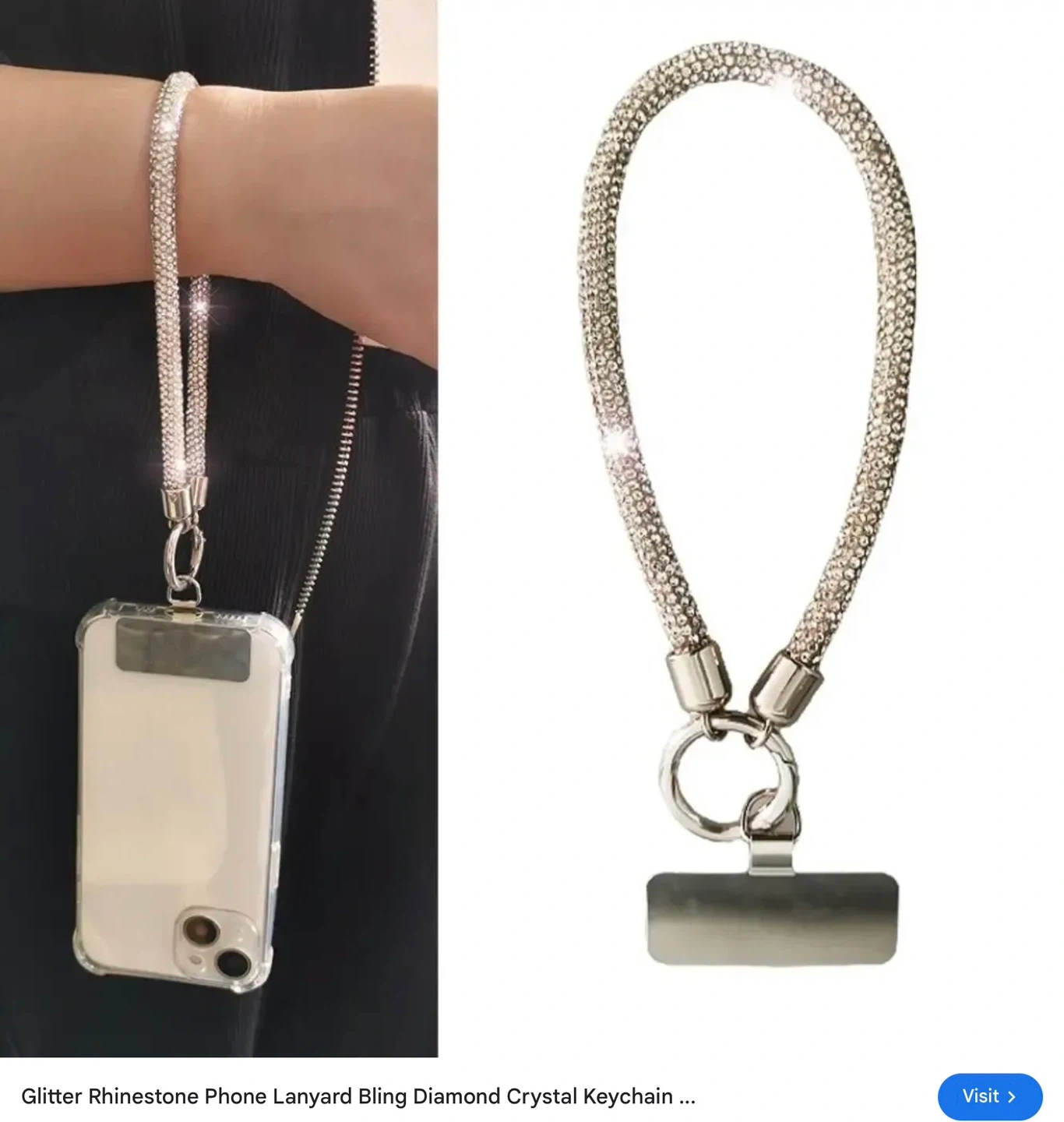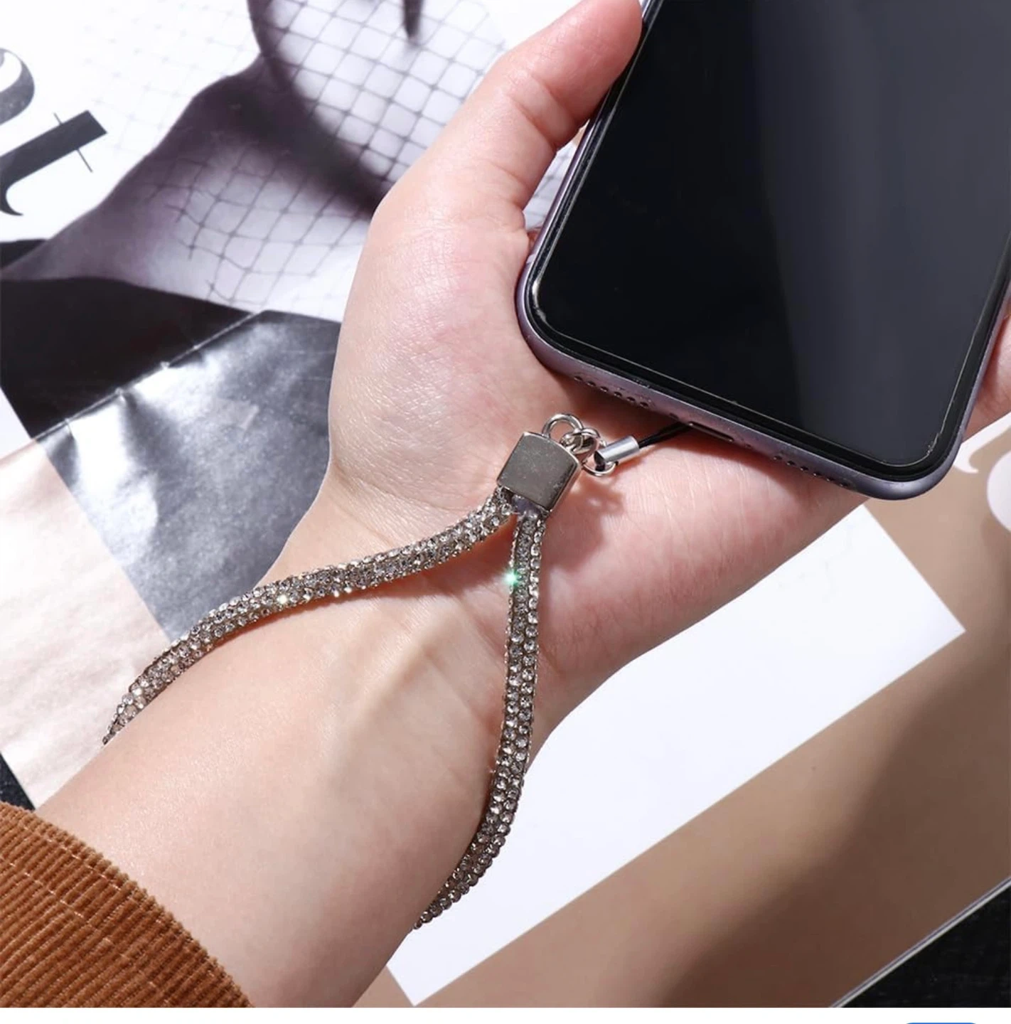 Add some sparkle to any phone with this dazzling rhinestone wrist strap! It's a secure way to hold your phone and prevent drops. Attaches easily to your phone case.