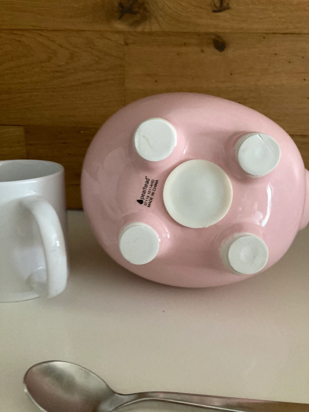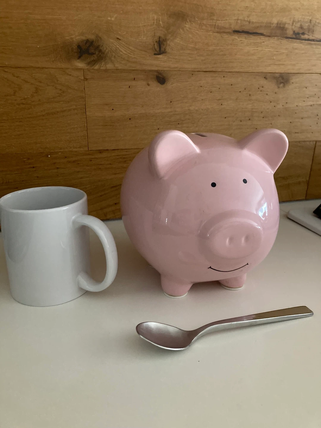 Cute ceramic piggy bank in a soft pink colour. It's perfect for saving coins and loose change. Has a stopper on the bottom for easy access to your savings! Bills and coins / easy to get both out. No chips or cracks.