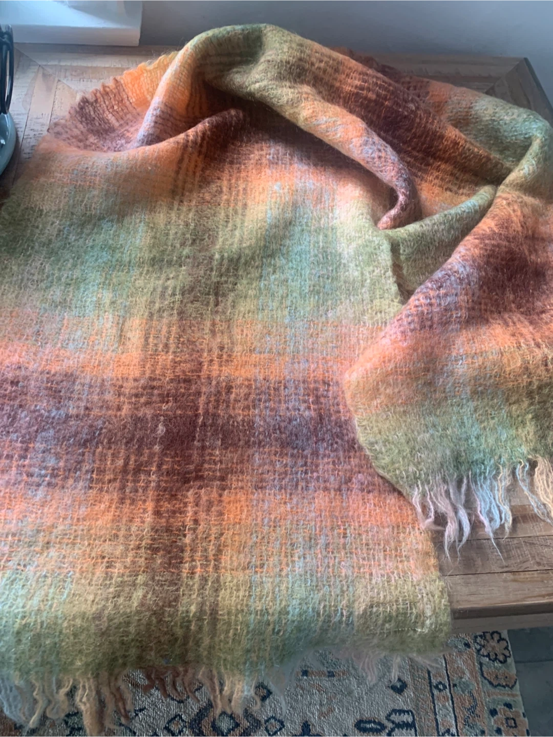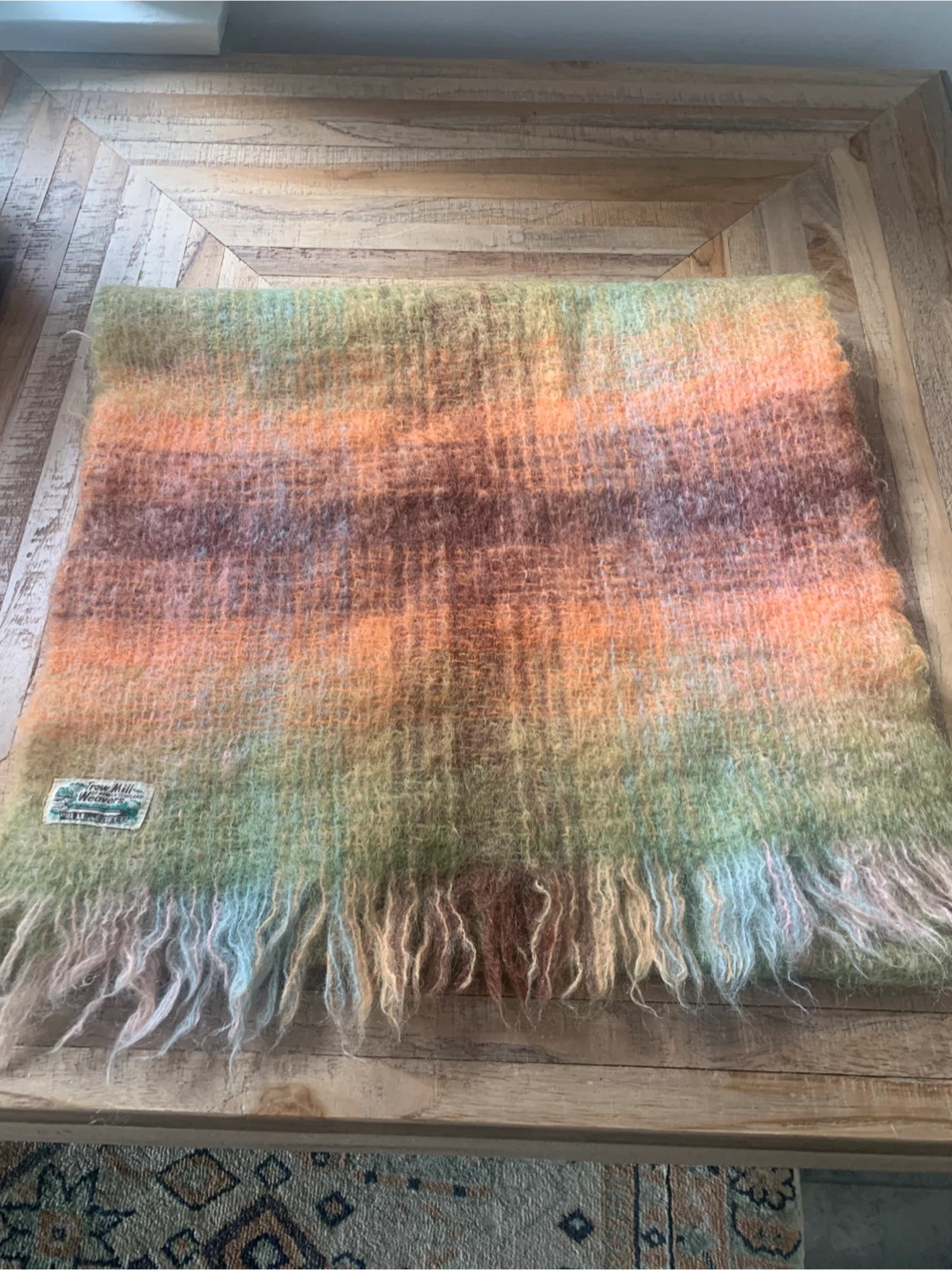 A beautiful scarf from Trow Mill Weavers of Hawick Scotland. It's made of wool with a lovely pastel plaid pattern. Perfect for adding warmth and style .