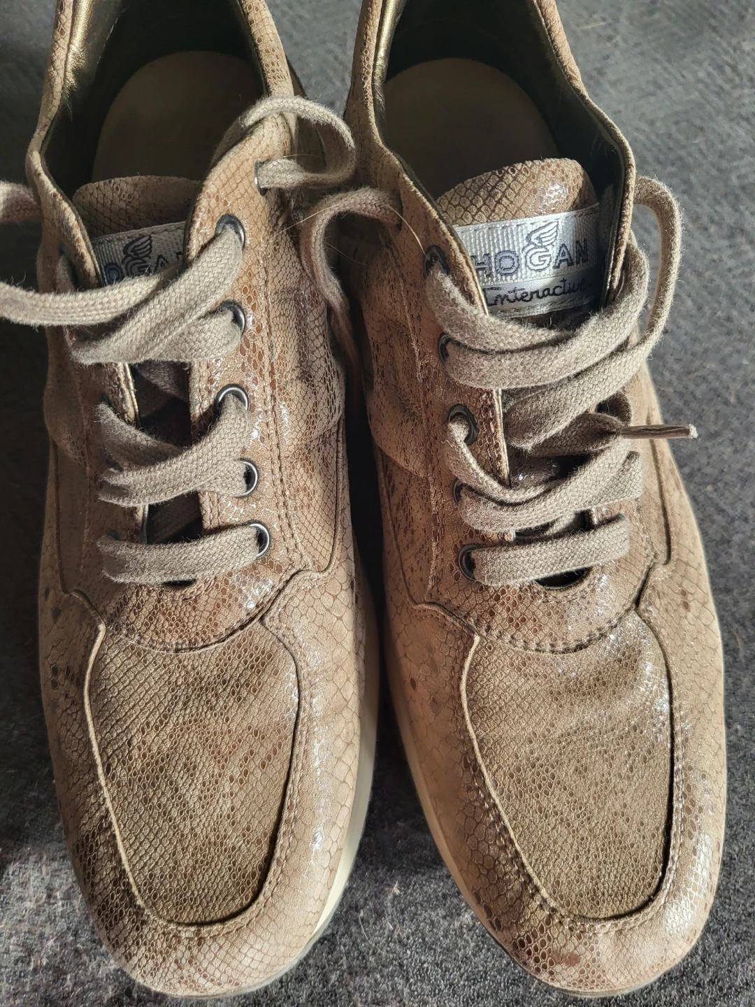 Hogan Interactive sneakers with a snakeskin-like texture. These shoes are a size 39.5 They're stylish and comfortable.