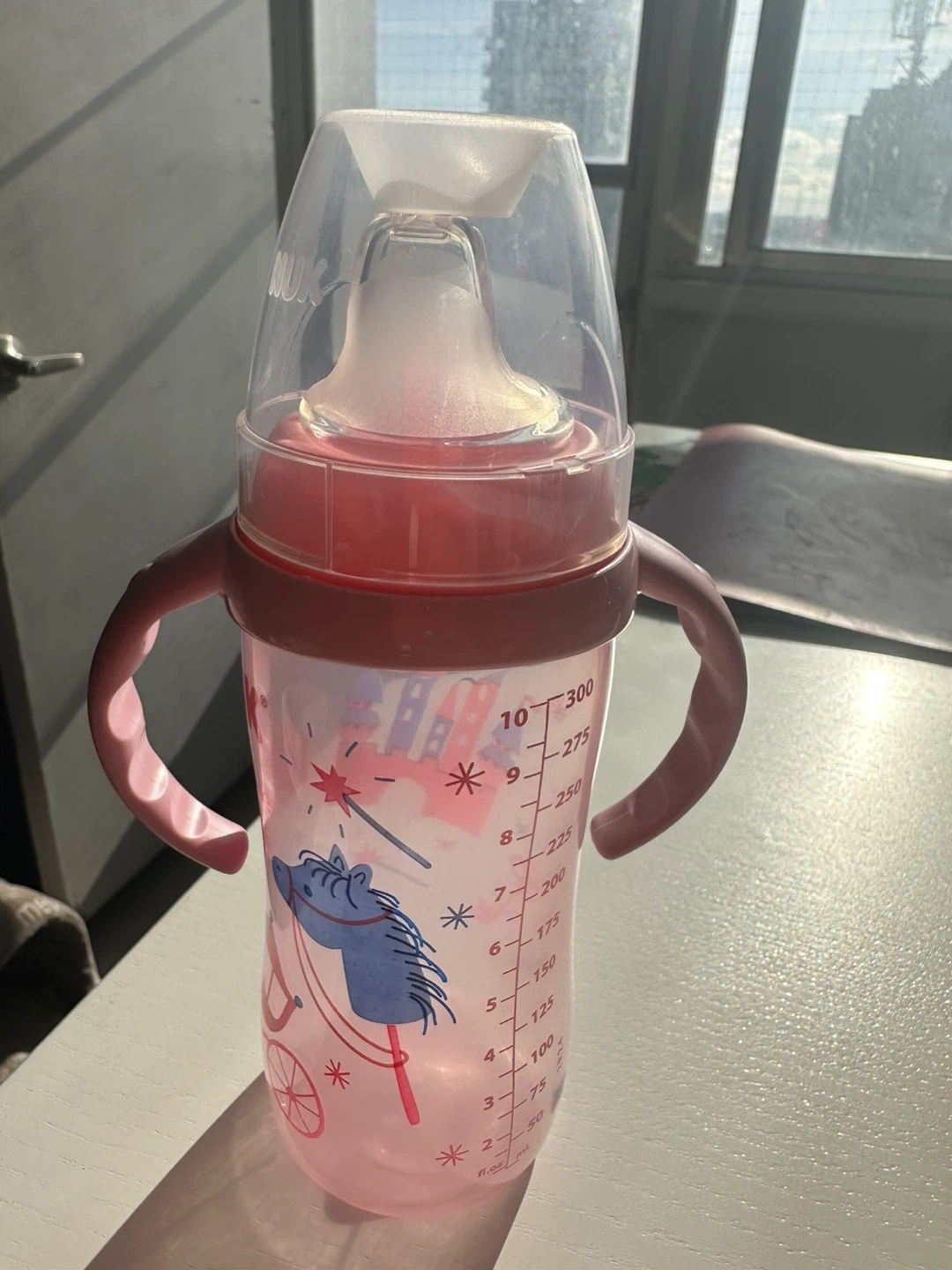 This NUK training cup is designed to help little ones transition from bottle to cup. It has easy-grip handles for small hands. Holds up to 300ml.