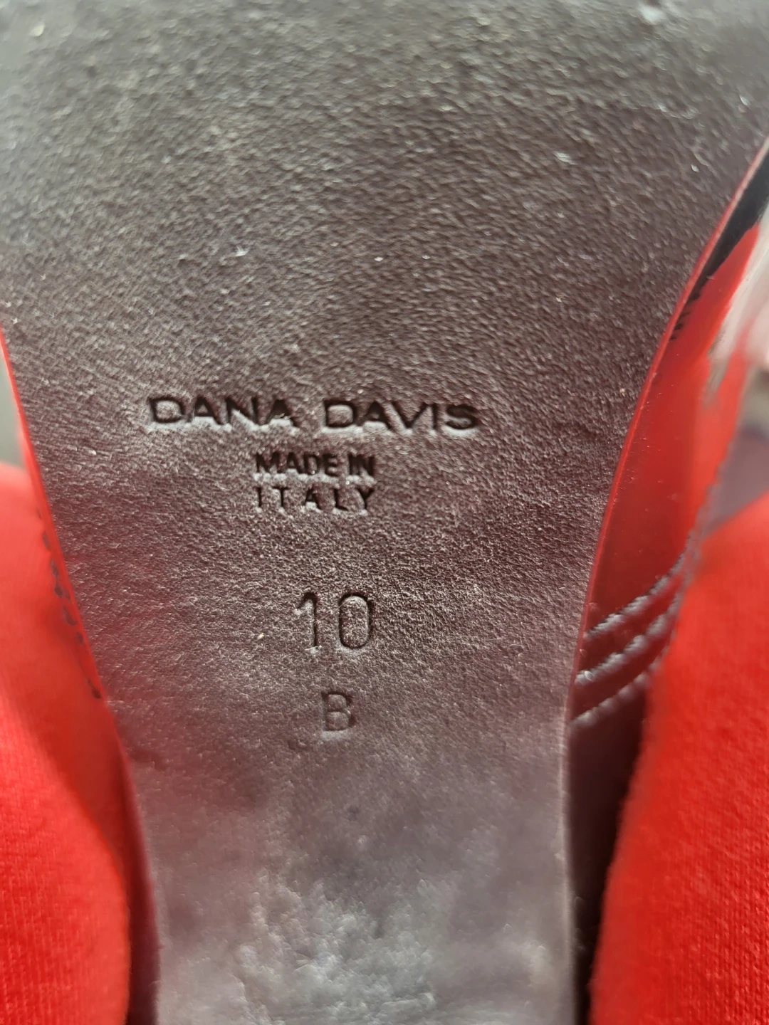 These stylish black peep toe heels are from Dana Davis. Made in Italy, they are a size 10 and feature a comfortable elastic strap design. They've got a sleek patent and leather finish.