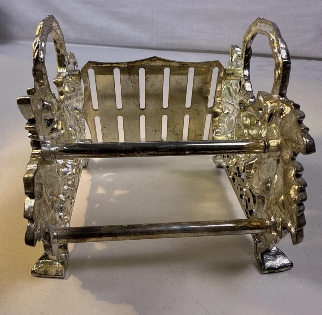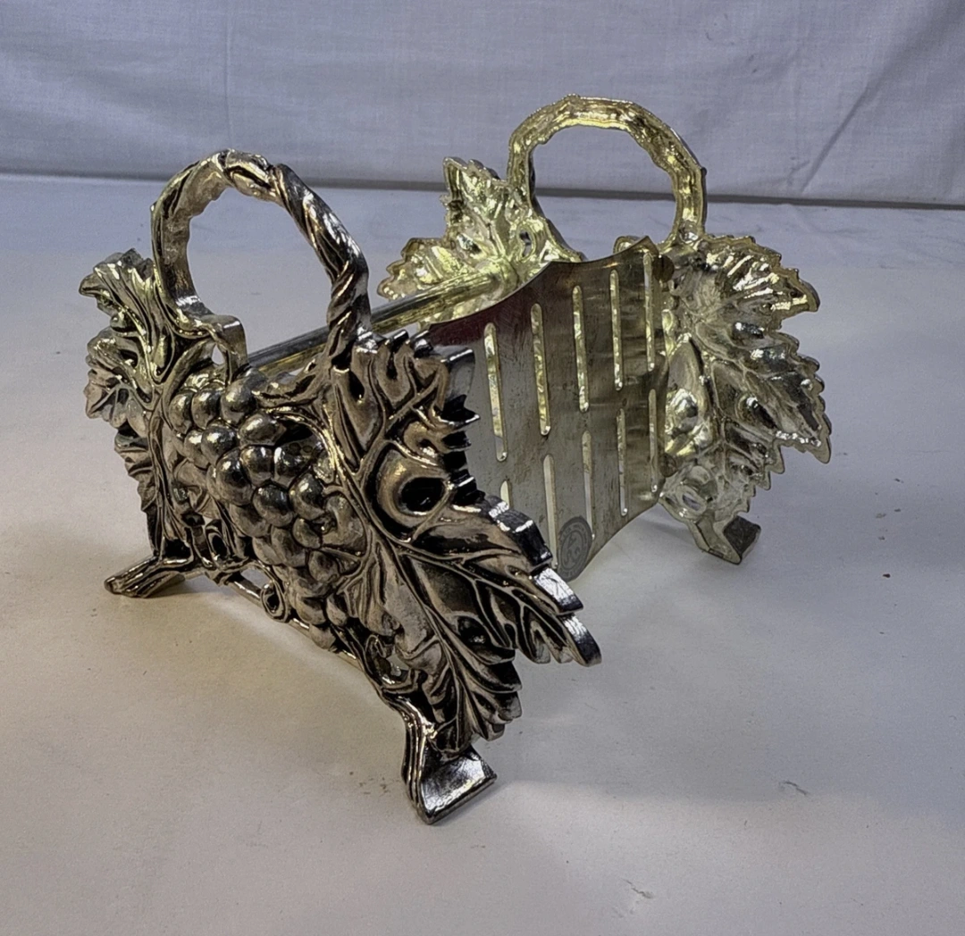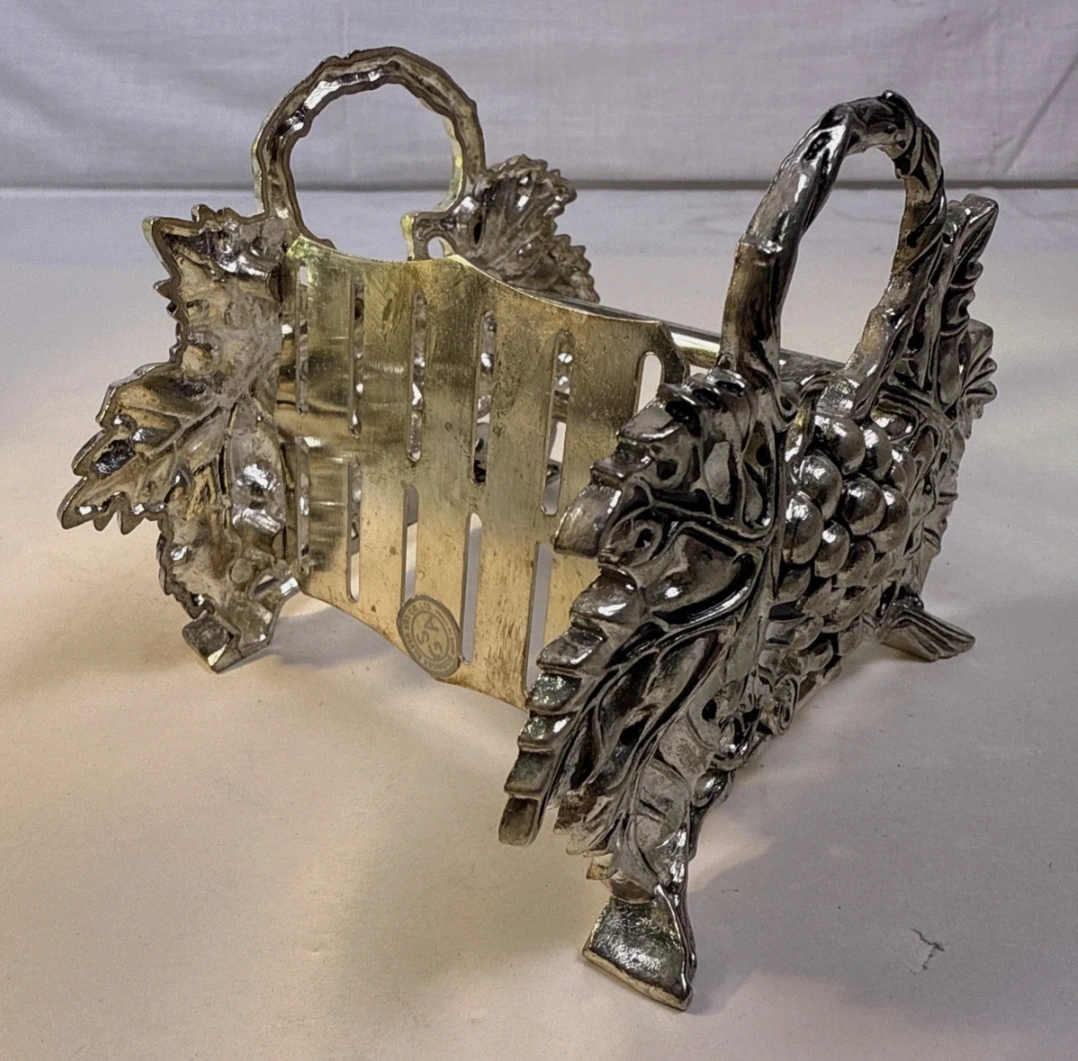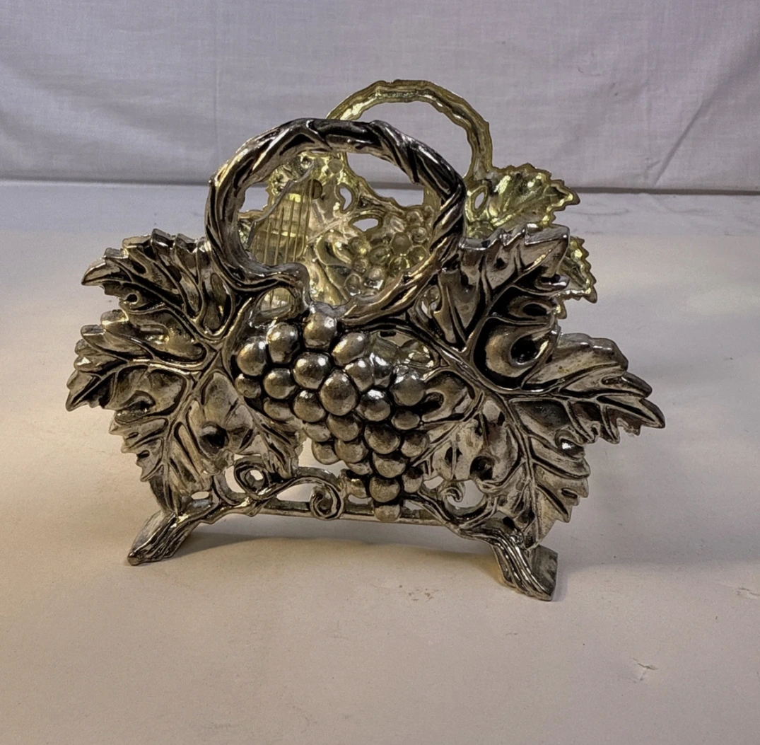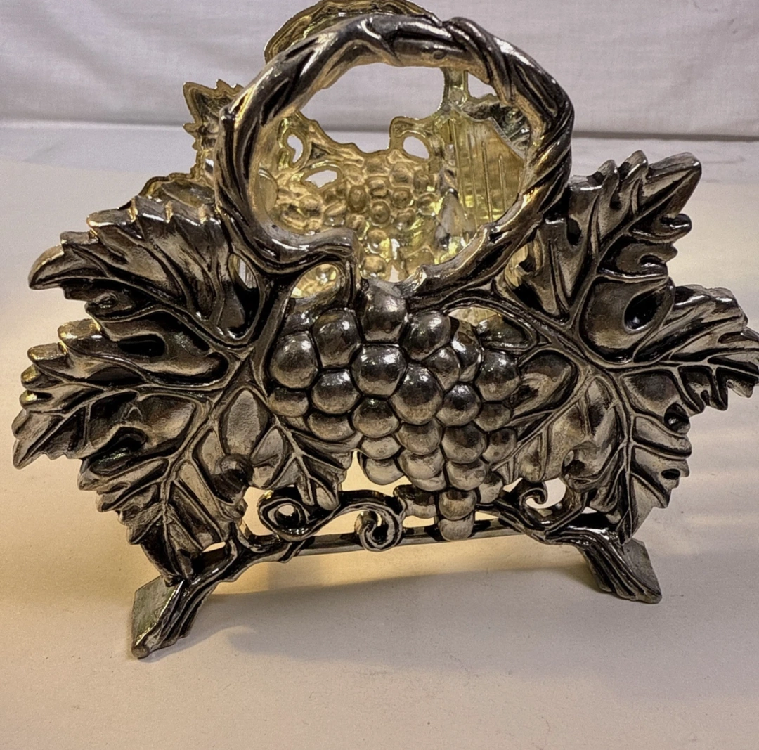 The silver-plated design features intricate grape and leaf detailing, making it a stunning decorative piece. It's in good, used condition